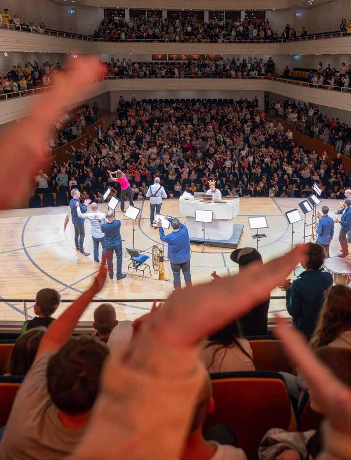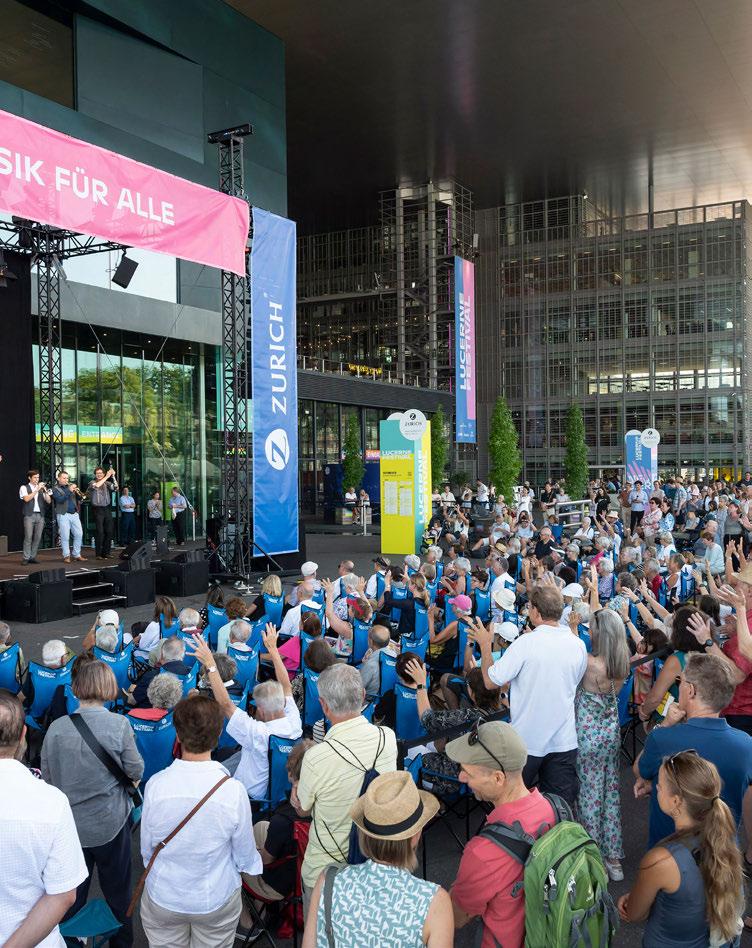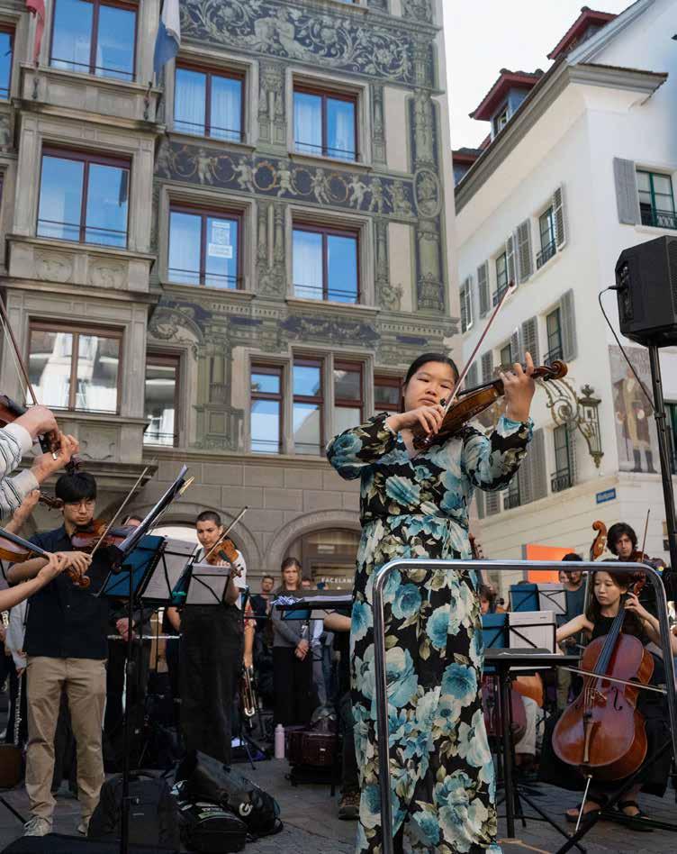Lucerne Festival is much more than just the traditional evening symphony concert. At “Mittendrin,” you sit onstage among the musicians and experience up close how the music comes to life. “In the Streets: City Stage” takes the Festival across the whole city for six days, with scheduled performances and surprise pop-up concerts in all kinds of places, featuring the “Symphonic Jukebox” and a marching band. New this year is the Cuban Night that opens the Festival on 13 August, with free performances both outdoors and in the Concert Hall.