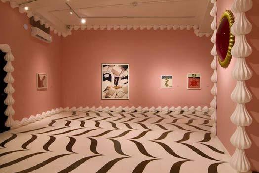 La primera sala, introducción. Es una puesta en escena, trata de replicar como él veía su casa a través de una “trasmuta ción de lo ordinario a lo valioso” por ejem plo una de las piezas que conforman esta sala es una mesa de vidrio que tiene como “sostén” lo que parece ser una piedra pre ciosa cuando en verdad es un telgopor pintado con dorado.