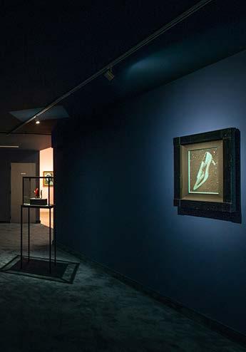 La propuesta curatorial tiene como objetivo otorgar inteligibilidad a un conjunto ecléctico de obras en función del contexto de recepción que definió la colección, más allá de sus ins cripciones en una historia del arte universal o nacional. La misión es recuperar la escena en la que se conformó este acervo marcado por la mediatización del arte contemporáneo y las fuertes transformaciones en el campo cultural. El diseño expositivo, desarrollado por los curadores y Job Salorio, se estructu ra a partir de la investigación de diversos so portes discursivos que han otorgado carácter a la Fundación Klemm desde su creación en 1995. La piedra angular del montaje es la se rie de programas de televisión producidos por Klemm junto con el crítico Carlos Espartaco entre 1994 y 2002: El Banquete Telemático La colección fue una escenografía recurrente en aquellas emisiones. La performance me diática de Klemm es su obra de arte total más ambiciosa y ha participado de la educación estética de varias generaciones. En las seis salas de la Fundación se disponen una se rie de sets y ambientaciones centrados en nociones paradigmáticas que estructuran el