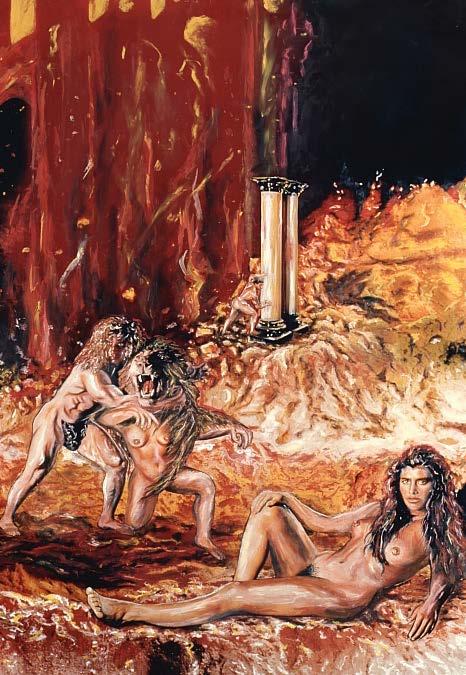 El proceso de producción de Klemm no puede separar se de su obra terminada. Todos los rollos fotográficos que en el archivo muestran modelos musculosos posan do entre escenografías de telgopor, que dan cuenta del proceso de trabajo de sus pinturas. Claro, esas situa ciones pueden pensarse como el motor detrás de toda su narración, una narración del deseo y del recuerdo en simultáneo. y esa narración es la que aparece tanto en su programa de televisión como en sus obras.