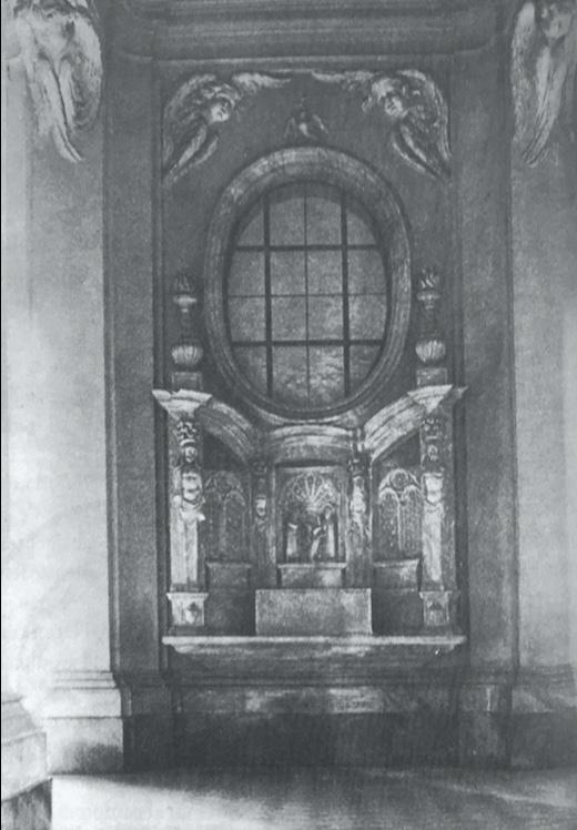 Francesco Borromini. La tumba del cardenal Giussano en San Juan de Letrán; las bíforas góticas, los elementos paleocristianos, los mosaicos cosmatescos, insertos en la espacialidad irreal del “teatro perspectivo” borrominiano, adquieren el valor del ready-made object, reunidos todos en un cáustico bricolaje. (Imágnes y epígrafes del texto original)