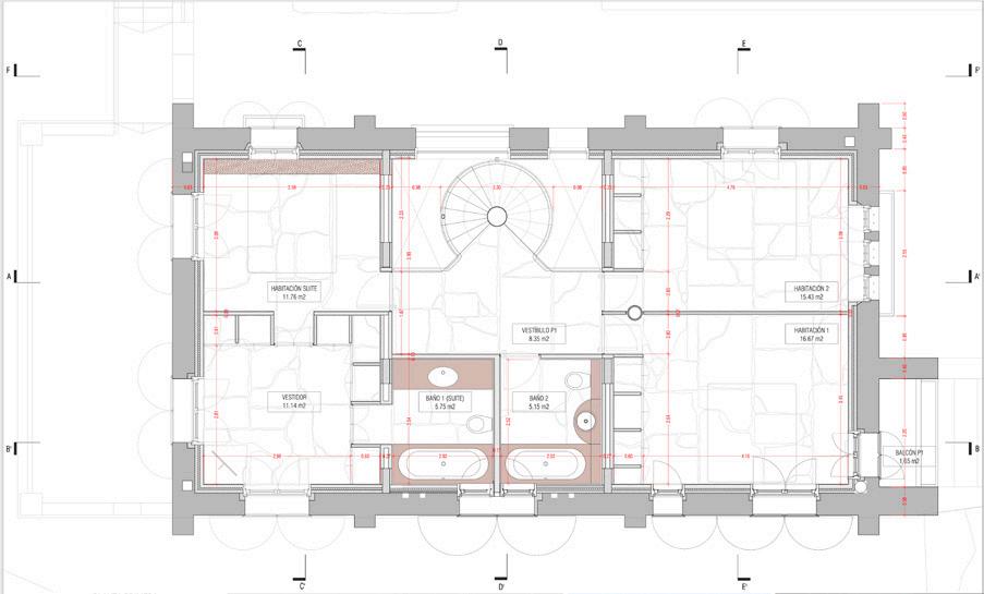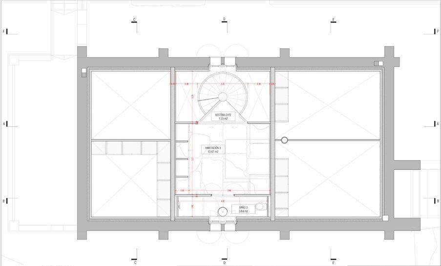 Planta alta. Documentación ejecutiva, planta de replanteo.