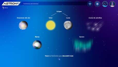 El segundo tema principal elegido fue el de para así poder presentarle a los niños aquellos fenómenos comúnes que ocurren en nuestro planeta y que generan dudas sobre por qué ocurren (eclipses, auroras, mareas, etc). De esta manera se les trae a los niños temas para aprender que podrán experimentar ellos mismos en algún momento.