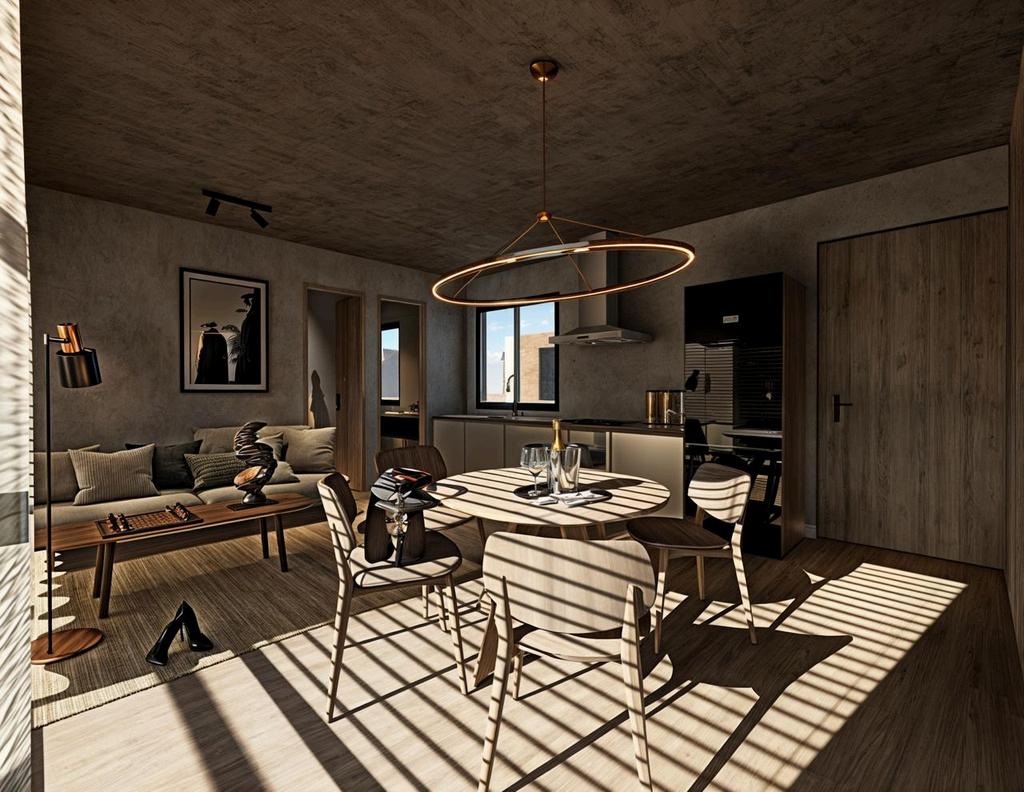 Acabados modernos y materiales de alta calidad, optimizando la iluminación natural y ventilación cruzada para crear ambientes acogedores.