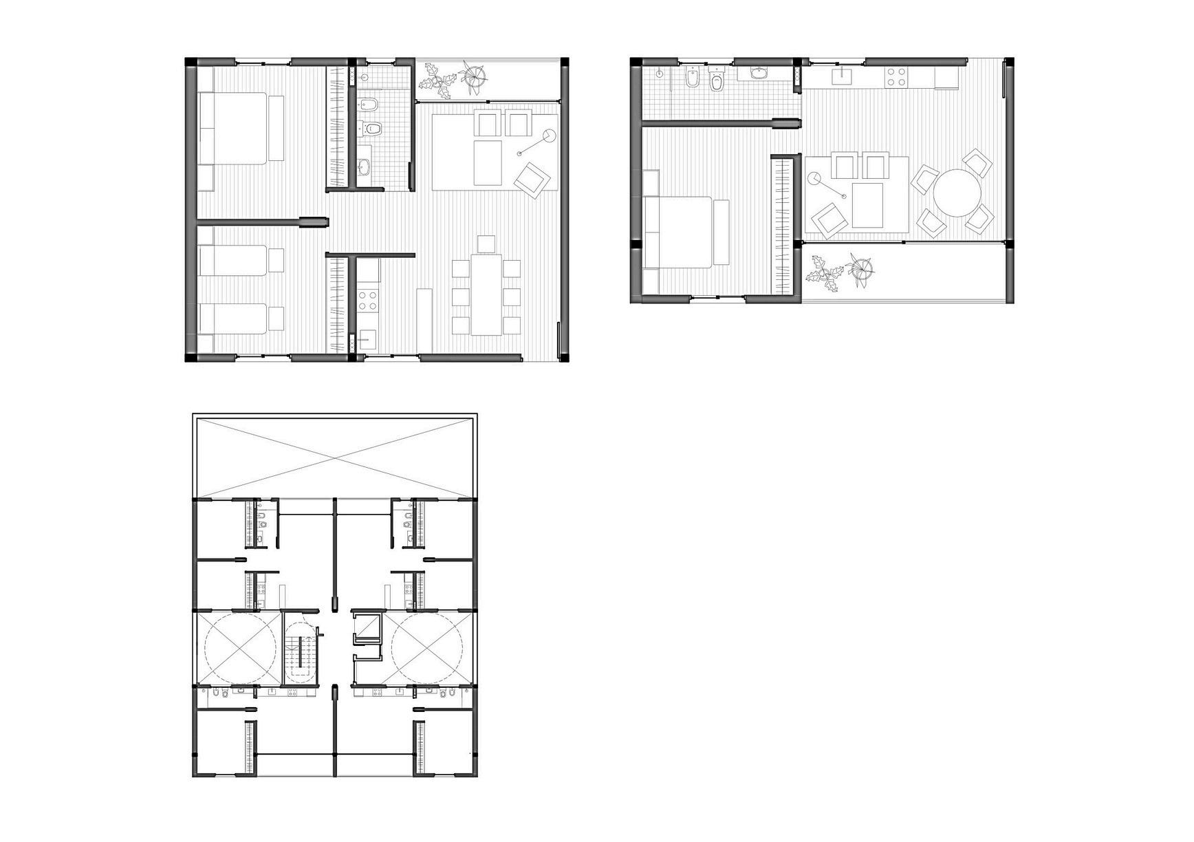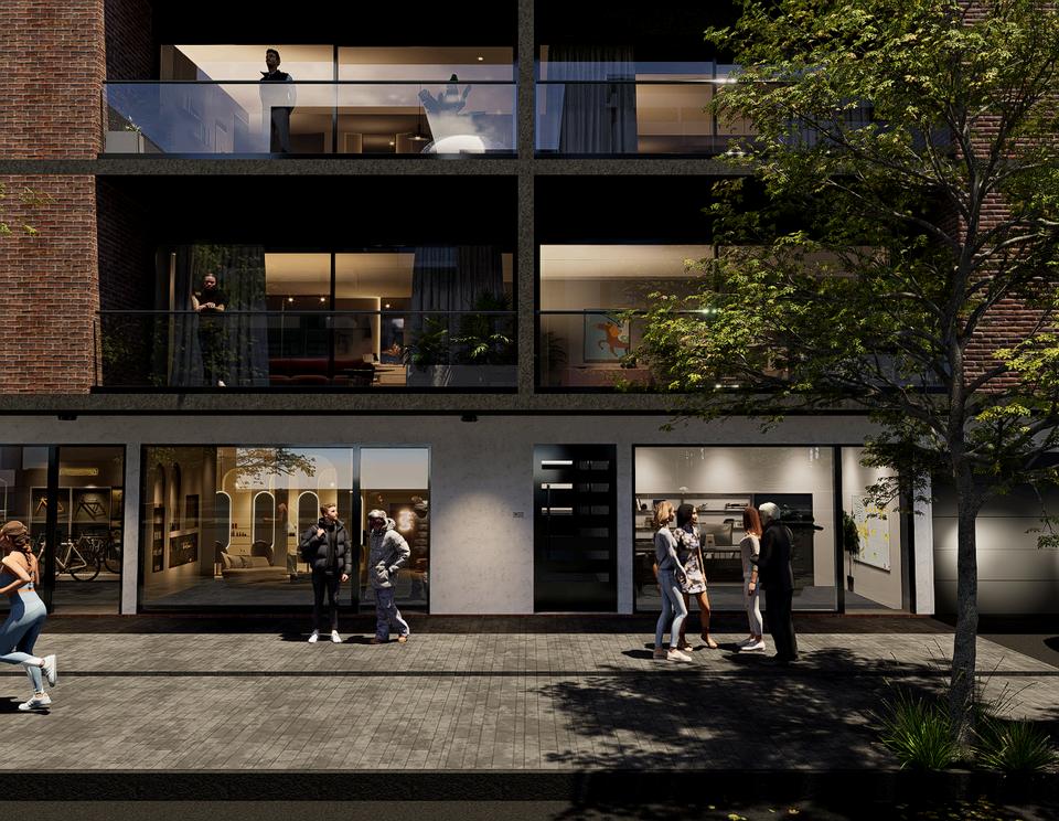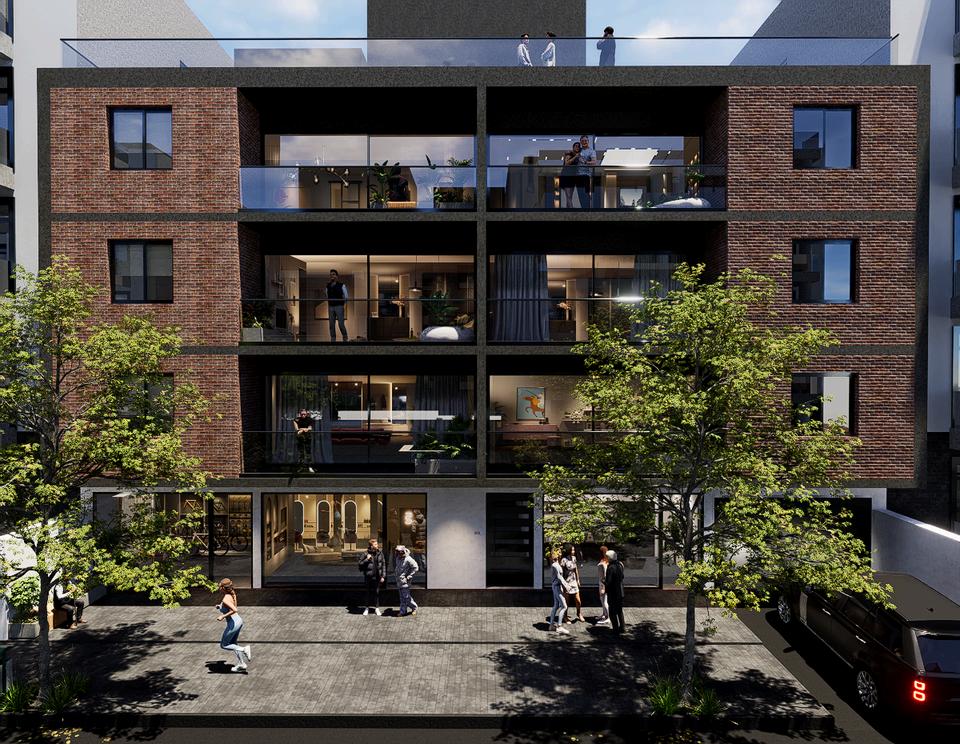 El edificio se compone de planta baja y cuatro pisos, con un total de 14 departamentos y 3 locales comerciales. Los departamentos se distribuyen en dos tipologías: 8 unidades de 2 dormitorios con 75m² cada uno, y 6 unidades de 1 dormitorio con 59m², todas ellas con balcón Están diseñados para ofrecer espacios amplios y luminosos, con una distribución inteligente que maximiza la funcionalidad y el confort. Los acabados seleccionados reflejan un alto nivel de calidad y buen gusto, brindando un ambiente elegante y acogedor.
