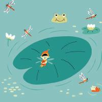 Gira y gira lentamente tu dedo alrededor de la hoja del nenúfar, y cuéntale al pequeño elfo los momentos más bonitos del día. ¡Buenas noches!