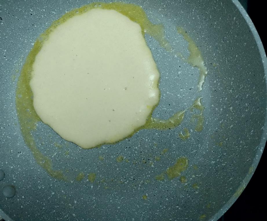 3-A continuación vamos a preparar los hot cakes. Para ello necesitamos una sartén para hot cakes o sartén antiadherente. Calentamos a fuego medio con unas gotas de mantequilla que vamos a esparcir por todos lados. Cuando el sarten este caliente dejaremos caer la mezcla en el.