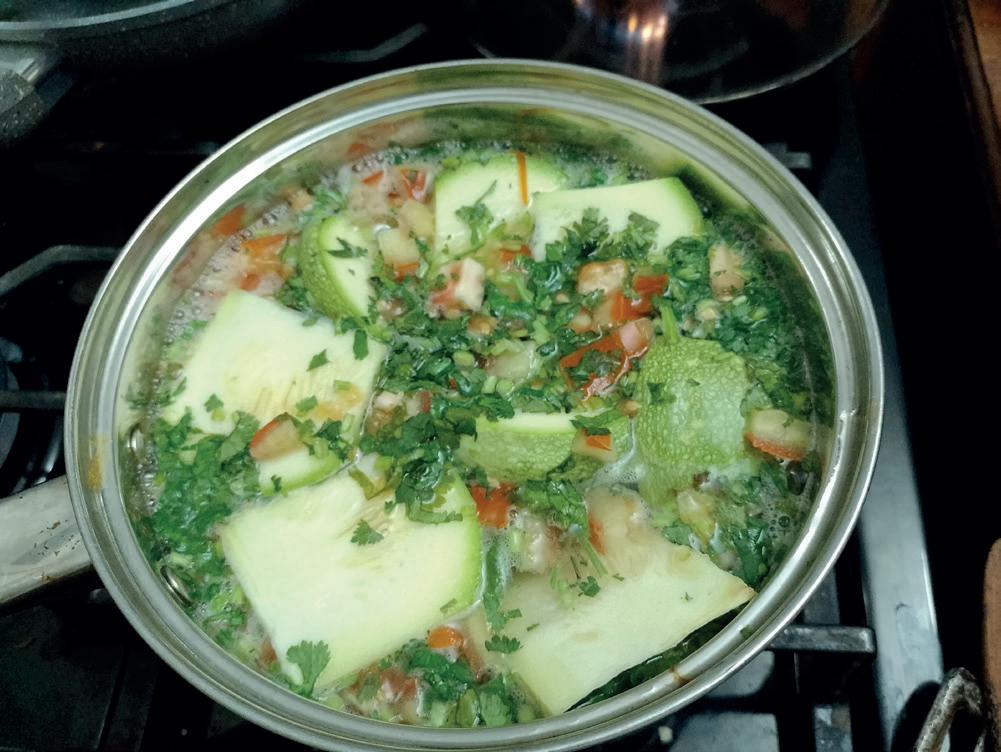 1- Debes lavar muy bien las verduras antes de iniciar, así podras empezar a cortar sin preocupaciones , el güicoy se partira en 4 partes.