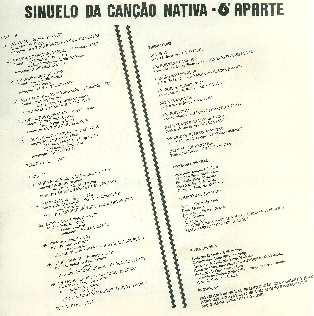 Neste aparte do Sinuelo foram inscritas para a triagem 140 composições representando 18 municípios do Rio Grande do Sul, sendo apartadas 26 canções para serem apresentadas em 02 eliminatórias e, finalmente, 12 composiçõesparacomporemodiscodofes val.