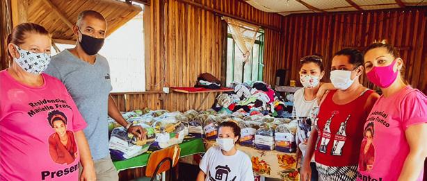 No final de semana da Páscoa, em 2021, realizamos três ações de solidariedade: entregamos cestas básicas para a Ocupação Marielle Franco, em Sapucaia do Sul, e no bairro Belém Velho, em Porto Alegre, para a Cooperativa Cidade Nova