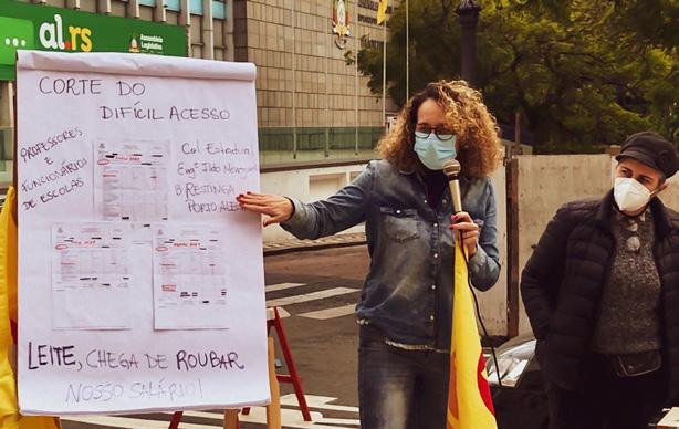Além da busca por melhorias, a deputada tem estado na linha de frente da luta contra a retirada de direitos. O governo Leite/Ranolfo promoveu um verdadeiro massacre nas carreiras, retirando conquistas históricas como os triênios e quinquênios, os avanços por tempo de serviço. O magistério sofreu ainda mais com a retirada do adicional de difícil acesso - reduzido drasticamente e em muitos casos extinto -, com o não-pagamento de dias de greve devidamente recuperados, com a cobrança da devolução de vale-transporte recebido de boa fé durante a pandemia e com sucessivos cortes e descontos abusivos