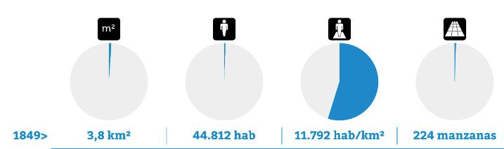A pesar del número de inmigrantes que llegaban a la ciudad, la superficie urbana en este periodo no sufrió mayores alteraciones. Esto, gracias a una utilización mejor del espacio a través de un dimensionamiento adecuado de las nuevas casas construidas y a la división de algunas existentes.