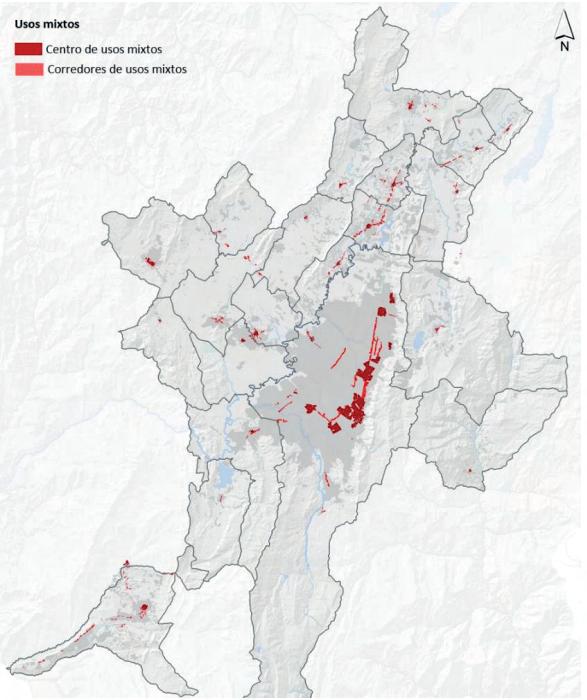 Finalmente, y en términos de usos se identifica que Bogotá D.C. logra configurar una variedad tipológica producto de la mezcla de usos al interior de su huella, esto permite el uso eficiente del suelo debido a la interacción del uso residencial con los comercios, servicios y dotacionales�