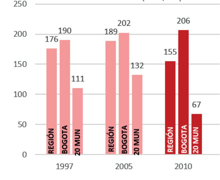 DENSIDAD POBLACIONAL (hab/Ha) DE BOGOTA 1997-2010