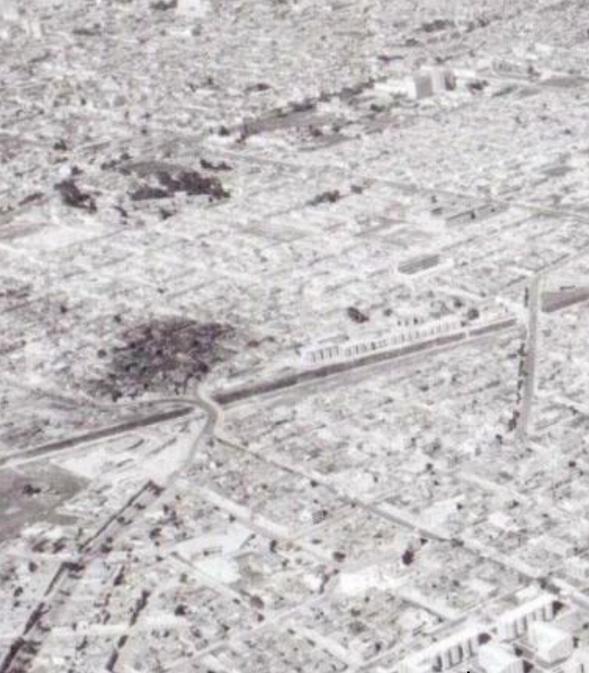 En este año el crecimiento económico y poblacional a aumentado considera blemnte lo que cambia completamne te los tipos morfológico de la ciudad, en espacial al ver la ciudad en una escala mayor. Debido a esto, en la escala del mapa, pareciera que por medio de la malla vial, la distribución de la manzanas se a convertido com pletamente aleatoria. Sin emabro, al llegar a una escala más local, las manzans de los barrios de principios de los años 1900's, conservan gran parte de su distribución por retícula.