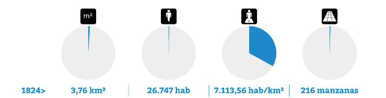 Desde su fundación la ciudad estaba constituida solamente por el paisaje que llamamos “retícula colonial” , definido alrededor de la plaza fundacional de la ciudad. Este paisaje es resultado de las Leyes de Indias que determinaban manzanas cuadradas.�