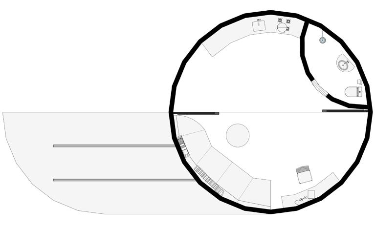 Trata-se de um projeto para uma casa de campo, uma morada transportável que atenda 1 (uma) pessoa e que traduza no espaço construído os ideais de relação com a paisagem, o sol e o humor do morador. A casa possui formato circular - sendo metade móvel - o que gera ambiências diferentes e permite a concretização do conceito de alternância: essencial dentro da experimentação. Tal forma, a contar com paredes curvas, busca romper com a compartimentação rígida dos cômodos poligonares, que encerram a visão num local determinado. As curvas pressupõem continuação, e esta continuação é desempenhada pela paisagem, num processo em que a habitação orienta o olhar para o campo visual além dela. Se a casa estiver aberta, o indivíduo atua como observador e ser observado. Fechada, espacializa-se o conceito de autossuficiência, uma vez que no círculo não há distinção ou divisão. Ao mesmo tempo, há janelas em fita à altura do olhar, pois mesmo quando o sujeito se fecha, ele continua a observar o mundo exterior. A residência necessita de uma base hidráulica e de trilhos férreos instalados, e suas paredes são de fibra de vidro e resina, materiais que conferem liberdade para moldar curvas. A mobilidade da estrutura também efetua uma relação própria com o sol, e a divisão do círculo compara-se metaforicamente à divisão do dia, ao passo que, conforme orientadas, as esquadrias deslizantes exibem nascente e poente nos lados opostos da construção.