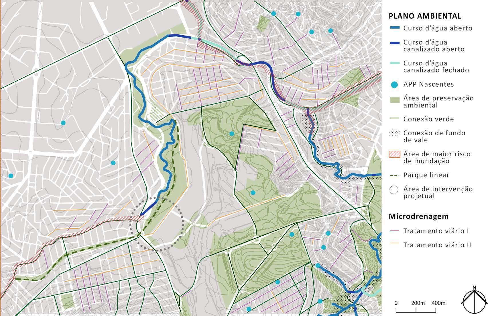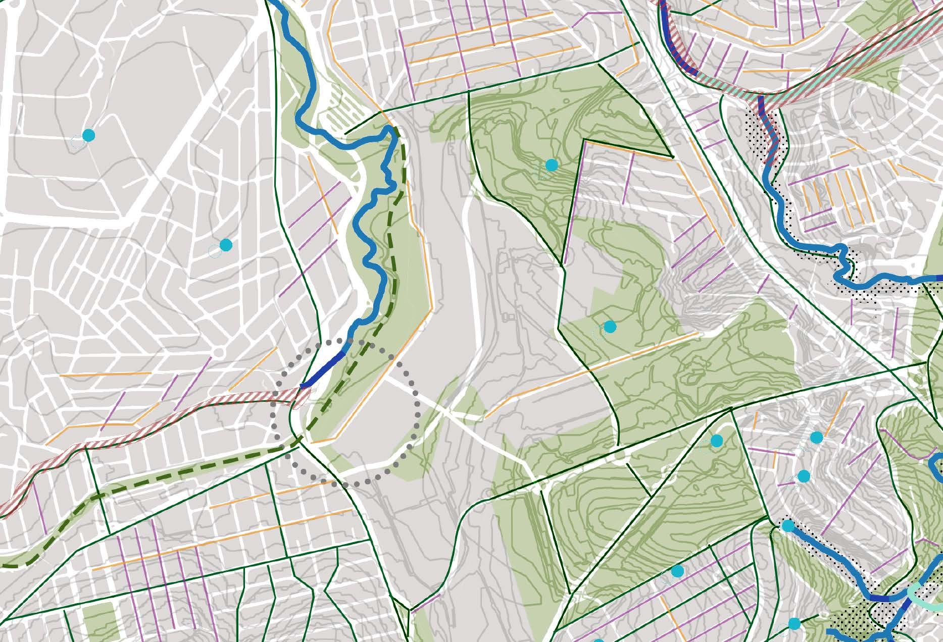 A proposta de zoneamento se concentra na área ocupada atualmente pela Mannesmann, mantendo as demais zonas em sua condição vigente. Foram considerados, primordialmente, os territórios naturais, que incluem o trecho do Ribeirão Arrudas, os pontos em que há nascentes e as porções de vegetação remanescentes; com o intuito de conectá-los. Fez-se, então, a delimitação de uma zona de grande equipamento urbano coletivo para comportar o mercado e a instituição de ensino, acompanhada de novas áreas de ocupação de uso misto e habitação de interesse social para atender as demandas criadas com o reforço da centralidade regional que se pretende gerar.