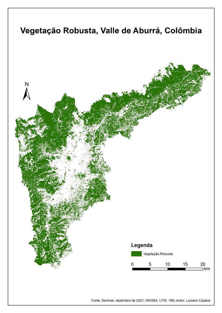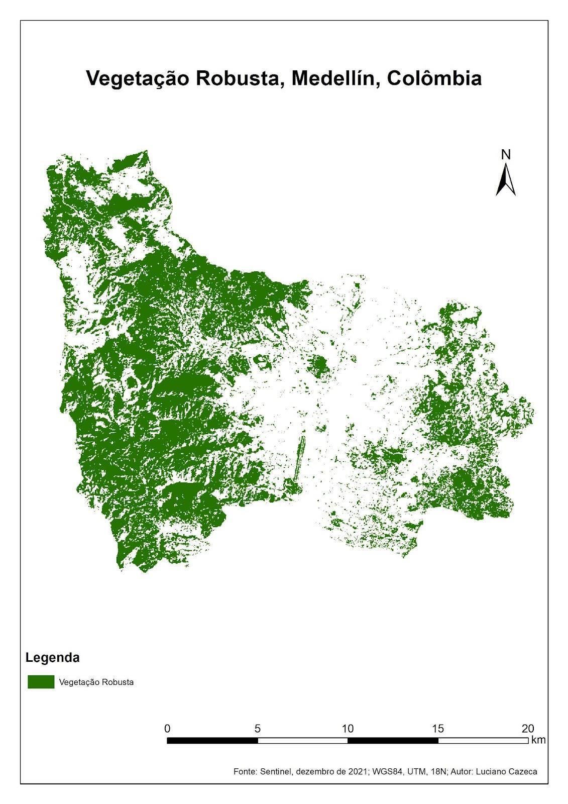 A partir do trabalho realizado, que envolveu o uso de geoprocessamento para caracterizar a vegetação do Valle de Aburrá, é possível fazer algumas observações. A vegetação mais robusta se encontra nas áreas ao redor da metrópole, enquanto o centro urbano, como o Centro Histórico, é densamente construído e possui pouca vegetação, o que afeta o clima local. Regiões como Poblado apresentam uma ocupação menos densa e algumas áreas de vegetação rasteira. Zonas industriais próximas ao rio Aburrá, que ocupam antigas áreas de mata ciliar, representam risco ao ecossistema. Parques públicos ao redor da cidade, como o Parque Arví, destacam-se como áreas de conservação, e dentro do ambiente urbano, parques como o Cerro El Volador mantêm porções significativas de vegetação. Apesar de fragmentos vegetais nos municípios do Valle favorecerem a biodiversidade, fragmentos menores nas áreas urbanas são vulneráveis devido à falta de conectividade. A partir do trabalho realizado, que envolveu o uso de geoprocessamento para caracterizar a vegetação do Valle de Aburrá, é possível fazer algumas observações. A vegetação mais robusta se encontra nas áreas ao redor da metrópole, enquanto o centro urbano, como o Centro Histórico, é densamente construído e possui pouca vegetação, o que afeta o clima local. Regiões como Poblado apresentam uma ocupação menos densa e algumas áreas de vegetação rasteira. Zonas industriais próximas ao rio Aburrá, que ocupam antigas áreas de mata ciliar, representam risco ao ecossistema. Parques públicos ao redor da cidade, como o Parque Arví, destacam-se como áreas de conservação, e dentro do ambiente urbano, parques como o Cerro El Volador mantêm porções significativas de vegetação. Apesar de fragmentos vegetais nos municípios do Valle favorecerem a biodiversidade, fragmentos menores nas áreas urbanas são vulneráveis devido à falta de conectividade. Conclui-se que a região apresenta potencialidades e vulnerabilidades que demandam estratégias de conservação, conectividade e desenvolvimento sustentável, alinhadas às dinâmicas de uso do solo.