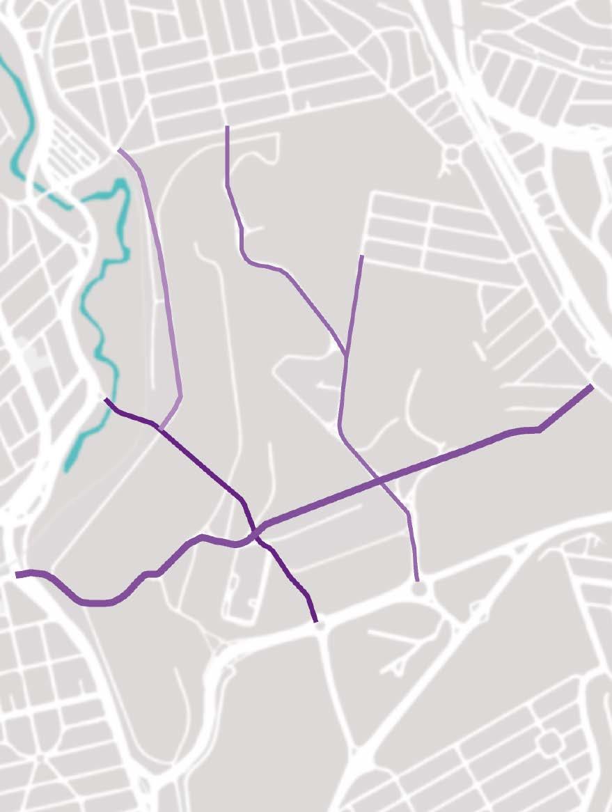 O planejamento das diretrizes viárias é uma estratégia crucial para interconectar as distintas áreas de uma região, e neste caso estabeleceram-se eixos fundamentais para conexão com as vias já existentes. Além disso, buscou-se articular tais eixos com as novas propostas de uso que ocuparão a antiga área da Mannesmann. As novas articulações projetadas têm como objetivo principal acomodar a crescente demanda de deslocamentos resultantes da evolução dos equipamentos urbanos da área, garantindo alternativas de acesso entre as diversas partes da região e suas áreas centrais. Pretende-se, assim, criar uma rede viária eficiente e integrada, que otimize o tráfego e promova a acessibilidade para os moradores e visitantes.