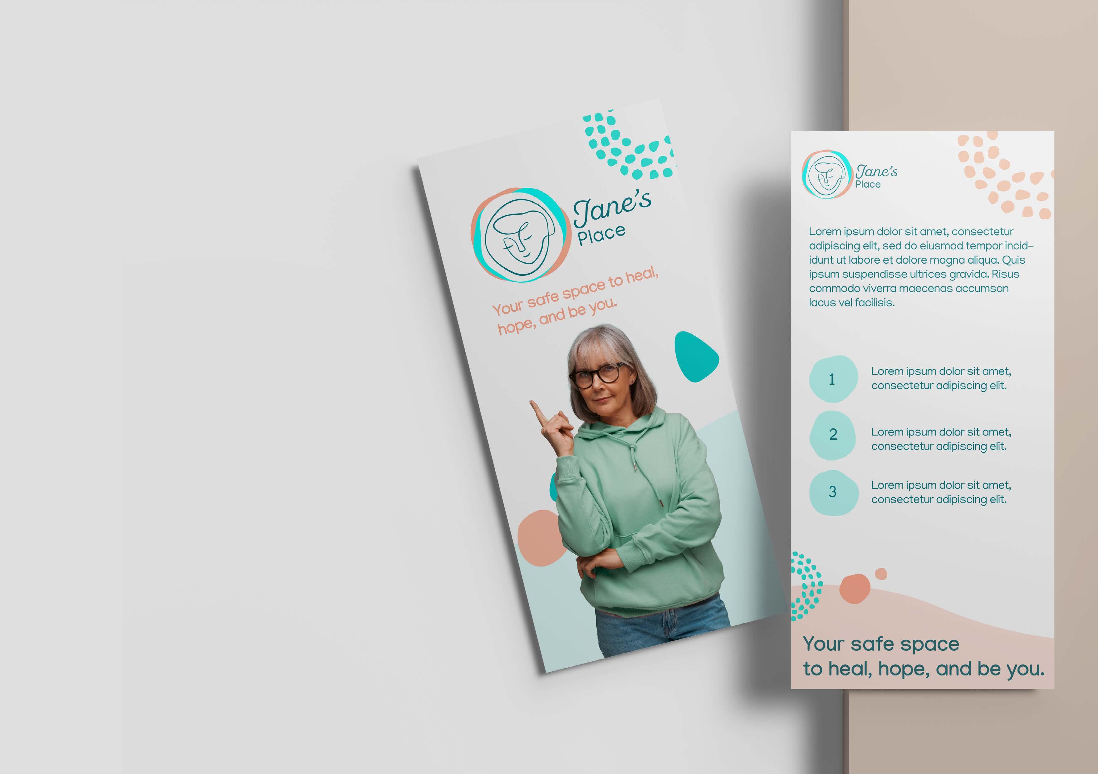 I developed the brand guidelines for Jane’s Place, aiming to infuse the branding with a sense of safety, calm, and welcome.