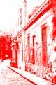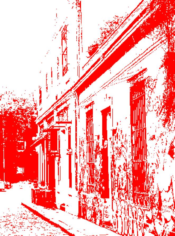 Todas las imágenes están presentadas en tonos de azul, rojo o negro, y tienen un efecto de umbral aplicado en Photoshop, creando una estética unificada y moderna que respeta la identidad visual del proyecto y destaca los contrastes entre lo tradicional y lo contemporáneo.