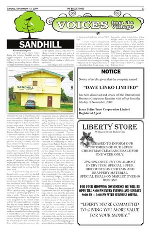 beyond the call of duty to help a fellow villager (and to an only slightly lesser extent, anyone in their midst), and the community solidarity is what has held the village together throughout times of adversity in its history. It can only be hoped that – whatever other tricks the UDP have up its sleeve to disadvantage or ‘chance’ the folk of Sandhill – the village community will unite even stronger than ever and provide the hope necessary to believe in a brighter Belizean future.