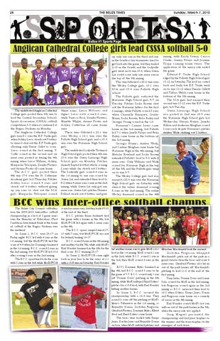 inning, with Kristy Savery, Carissa Clarke, Ianney Pelayo and Jasmine Trapp coming home twice. T he application of the mercy rule ended the game. Edward P. Yorke High School edged by the Pallotti High School girls 13-12 on Saturday. The lead see-sawed back and forth but E.P. Yorke went on to win 13-12 when Sherrie Gillett and Tiffara Welch came home in the bottom of the 5th inning. The SCA girls had enjoyed their second win 13-12 over the E.P. Yorke girls last Tuesday. Gwen Lizar rag a High School also posted its 2nd win 18-9 over the Nazarene High School girls last Wednesday. Sheryn Nunez, Jameka Hilton and Audreana Meighan scored 3 runs each despite Nazarene’s pitcher Amber Wade striking out 3 batters.