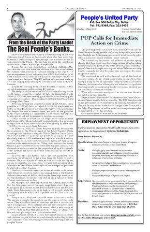 PUP Calls for Immediate Action on Crime The increasing levels of violence, the hideous nature of some of these crimes, including grenade explosions, decapitation, murders in broad daylight and the increasing instances of involvement by police officers in serious criminal activities cannot continue. The constant cry by parents and relatives of victims openly alleging that their loved ones have been victims of extra-judicial murders by police officers as well as the obvious lack of respect for people’s lives has brought us to a point where Belizeans not only fear the criminals, but also the police who are supposed to serve and protect citizens. The emotional as well as the financial cost of this level of violence continues to rise adding more burden to our citizens who must pay for all aspects of crime from enforcement to incarceration. Likewise, the situation is offering no real solutions to a problem which represents a consequential hurdle to economic recovery and the restoration of business confidence. When a Government cannot protect its citizens from threats it has failed in its basic mandate. Belize is fast headed towards a failed state and the Prime Minister and his Cabinet must be held accountable. The PUP therefore calls on the government to act immediately by replacing the Minister of National Security and to make drastic changes in the Command at the Police Department, as well as work out a comprehensive plan to immediately reverse this situation. Government must act now and do so decisively.