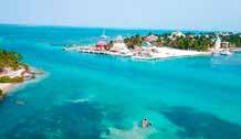 picture-perfect representation of tropical paradise. Palm trees, clear turquoise water, and of course, warm sandy beaches. The island is capped on either end by two resorts – Pelican Beach and Blue Marlin Lodge – each offering its own amenities and perks. But all visitors can enjoy the tranquil beach experience for which the caye is known, including snorkelers who can just walk in and out of the water at their leisure.