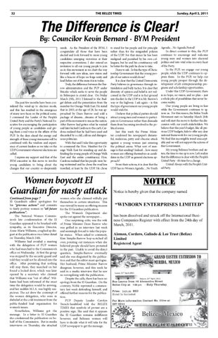to stand for his people and for principle rather than for the misguided policies of the UDP. For that stance he has been maligned and punished by his own colleagues, but he and his constituency will be better for the path he chose to take. I have to ask - Is this the type of Dictatorship Government that the young people of our nation would chose? It is clear that the United Democratic Party believes in governance through intimidation and bully tactics. It is clear that diversity of opinion and belief is not welcomed in the UDP and is in fact ground into the dirt. In the UDP it is Mr. Barrow’s way or the highway. I ask again – is this the type of government our young people would wish for. I believe that political parties should attract young men and women to participate in Governance rather than dissuade them from becoming involved in the political arena. Just this week the Prime Minister condoned his newspaper’s distasteful, malicious, petty and obscene attack against a young woman just entering the political arena. What sort of message is that sending? Indeed…how many women are offering themselves as candidates in the UDP as general elections approach? From their actions, it is clear that the UDP has no Women Agenda…No Youth