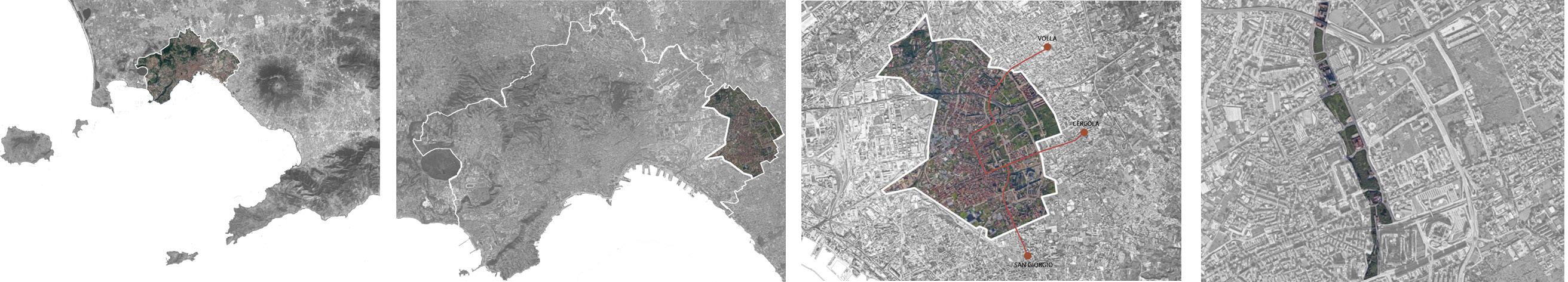 It aims to rediscover and emphasize the Vesuvius-Sea reconnection and to enhance the series of functional poles present and added on the transverse that connects the gardens of the Portici Palace to the Granatello port and the Mortelle beach.