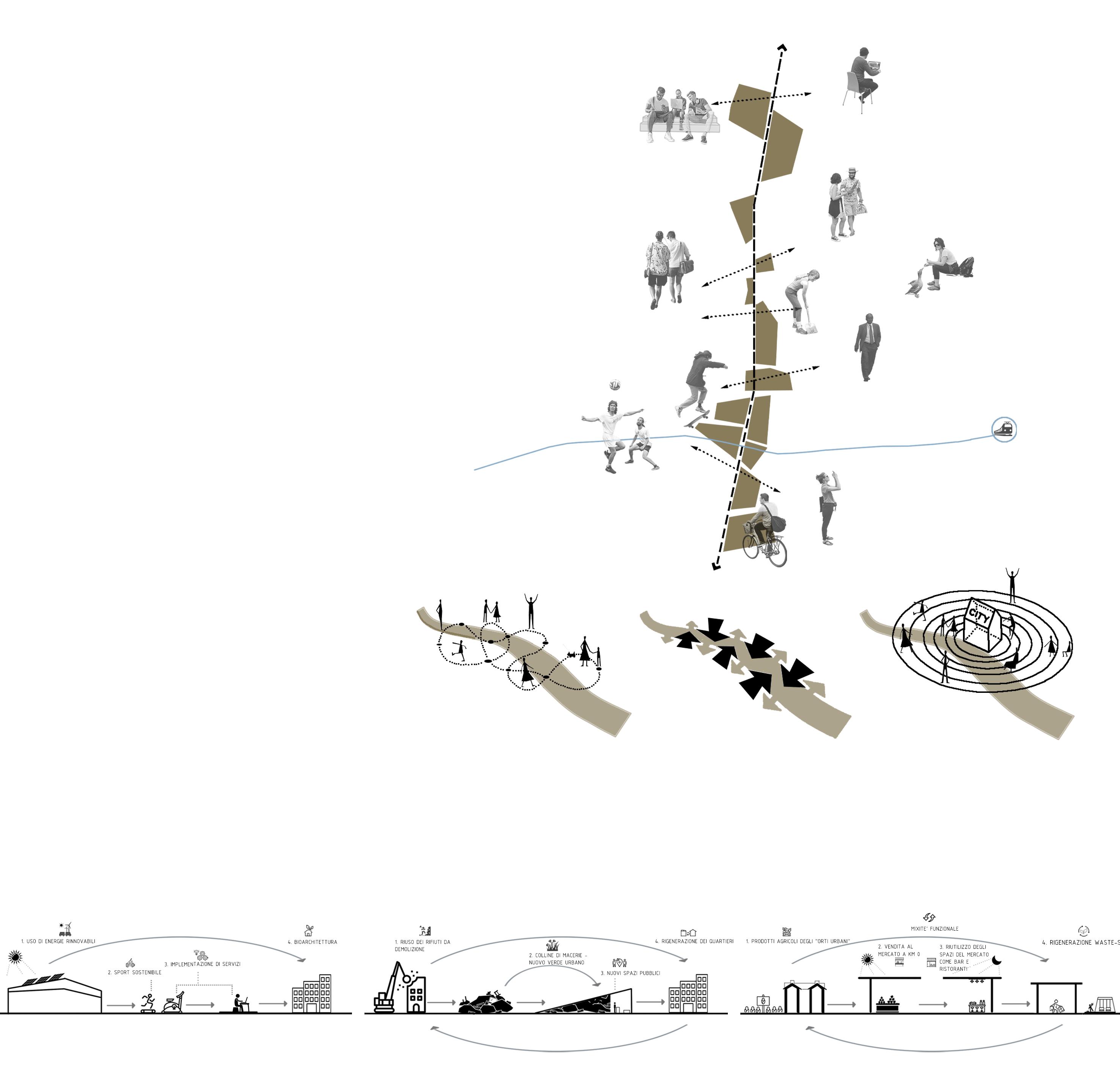 In particular, the aim is to generate hubs of social and collective aggregation, to outline the related interconnections so as to obtain an urban fabric that at least attempts to follow in the footsteps of the more specifically public one.
