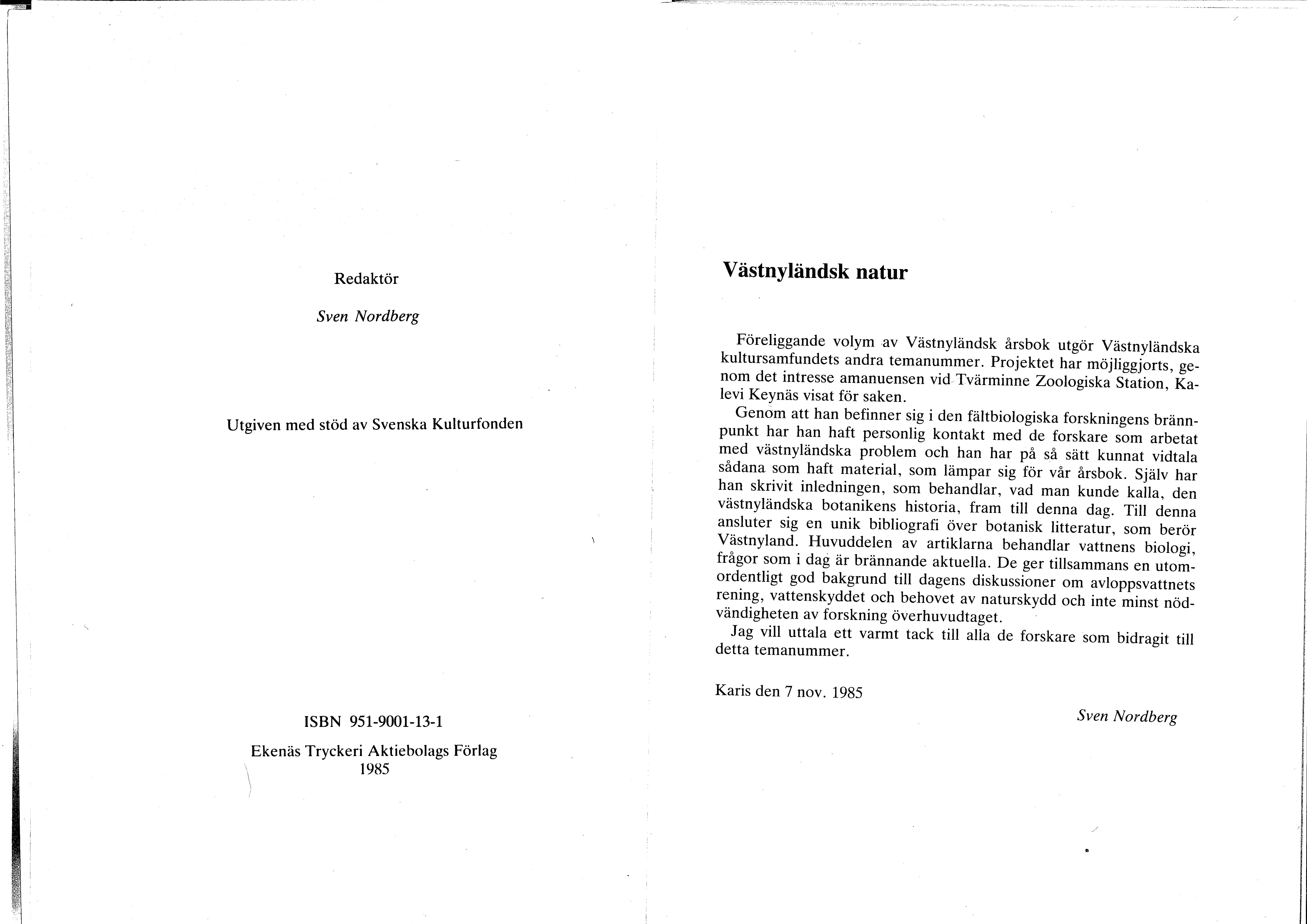 Västnyländsk årsbok 1985 – Del 1 av 2