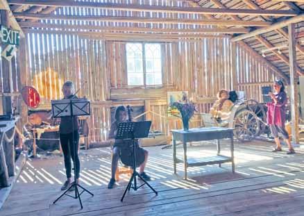Årets tema för årsboken är barnkultur. Agnes Kvarnström och Milja Prior spelade violin och cello då det i juli var vernissage på den ultralokala konstutställningen på Pargas gårds ladugårdsvind. Foto: Bitte Westerlund