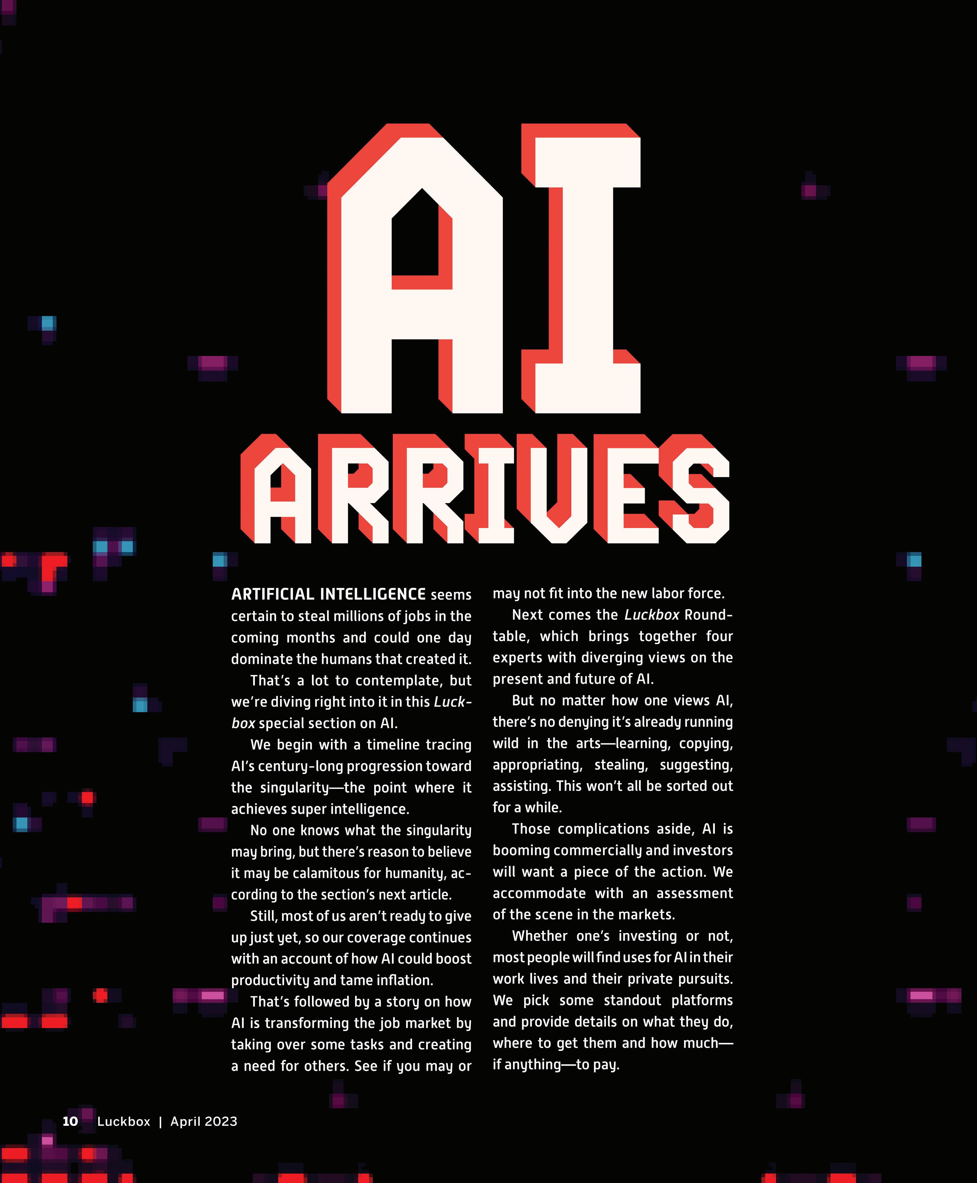 Our usual approach to theme-based issues of Luckbox requires engaging a contrarian. For this issue it would have been someone who discounts the importance of AI to society and to investors. But we believe providing a plat-