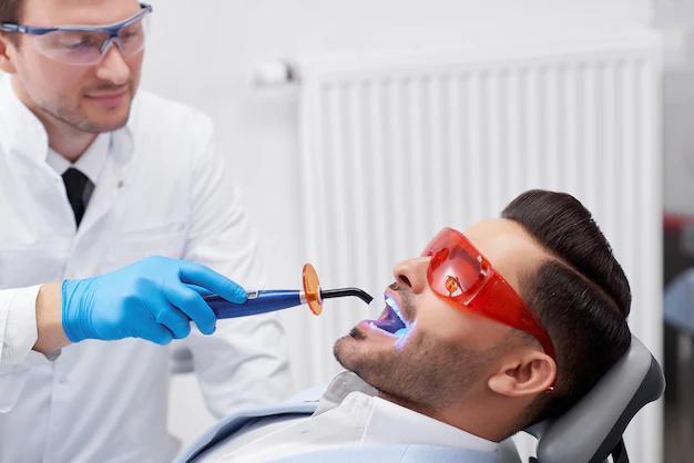 On the day of your treatment, you will come into the office and have a gel applied to your teeth. This gel contains hydrogen peroxide, which is what bleaches your teeth. Your dentist will then place you under a special light that activates the gel and helps it penetrate your teeth.