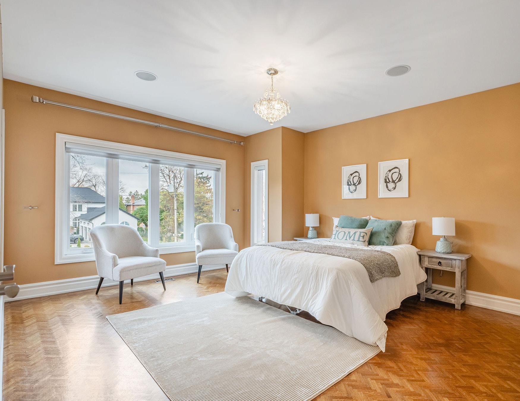 The upper level offers 5 spacious bedrooms, including a master retreat with a luxurious six-piece ensuite, a walk-in closet, and a serene sitting area overlooking the backyard, perfect for unwinding.