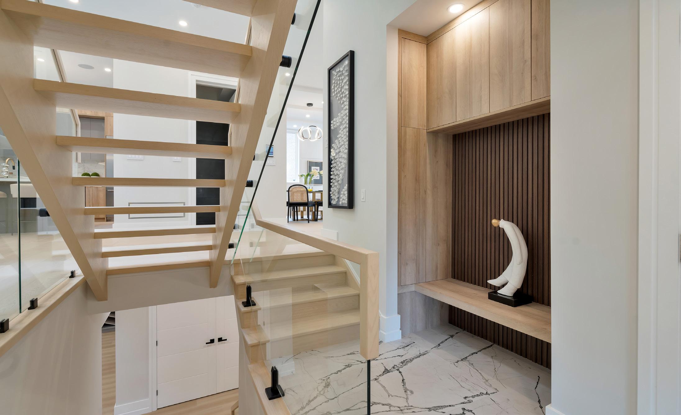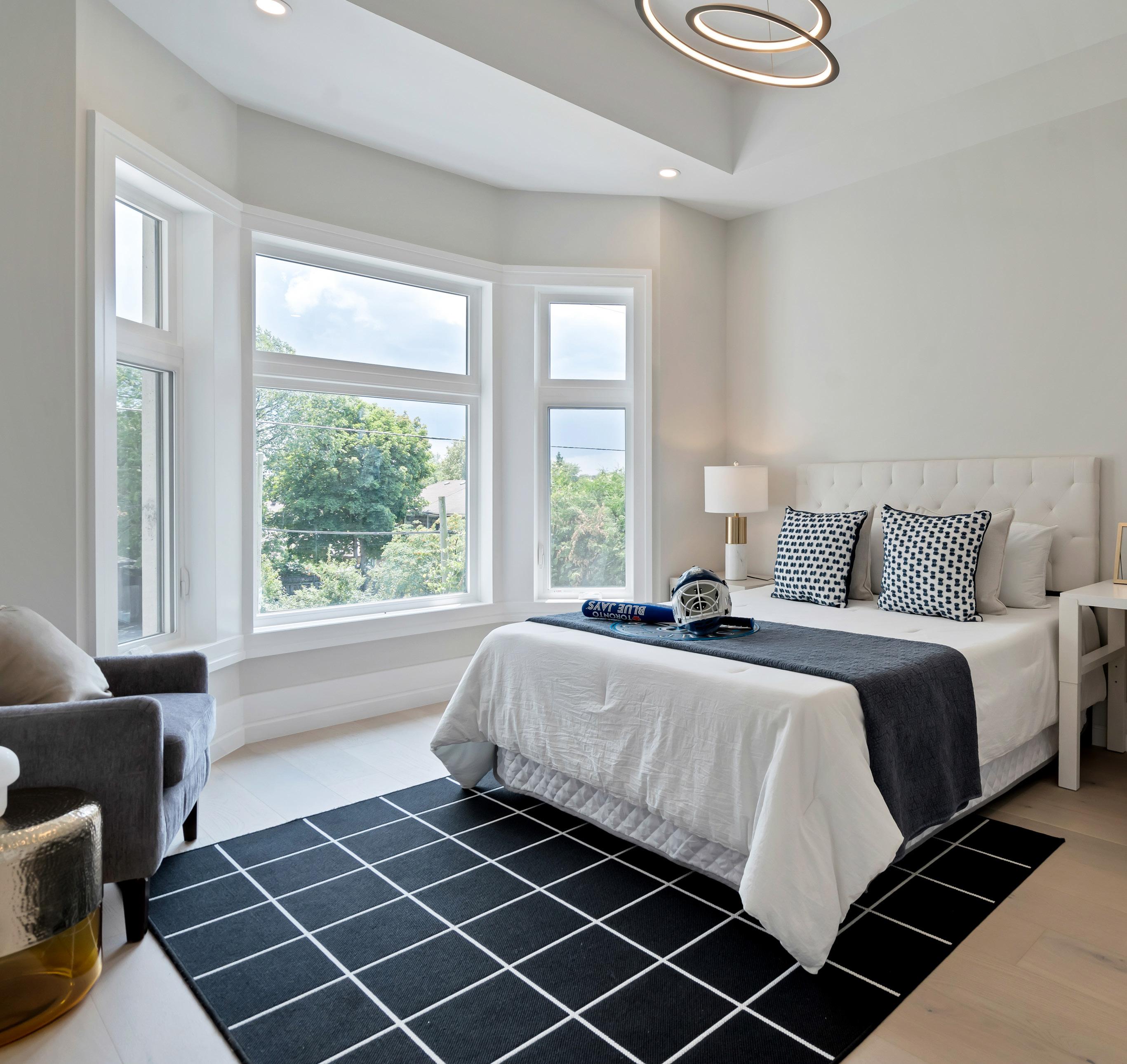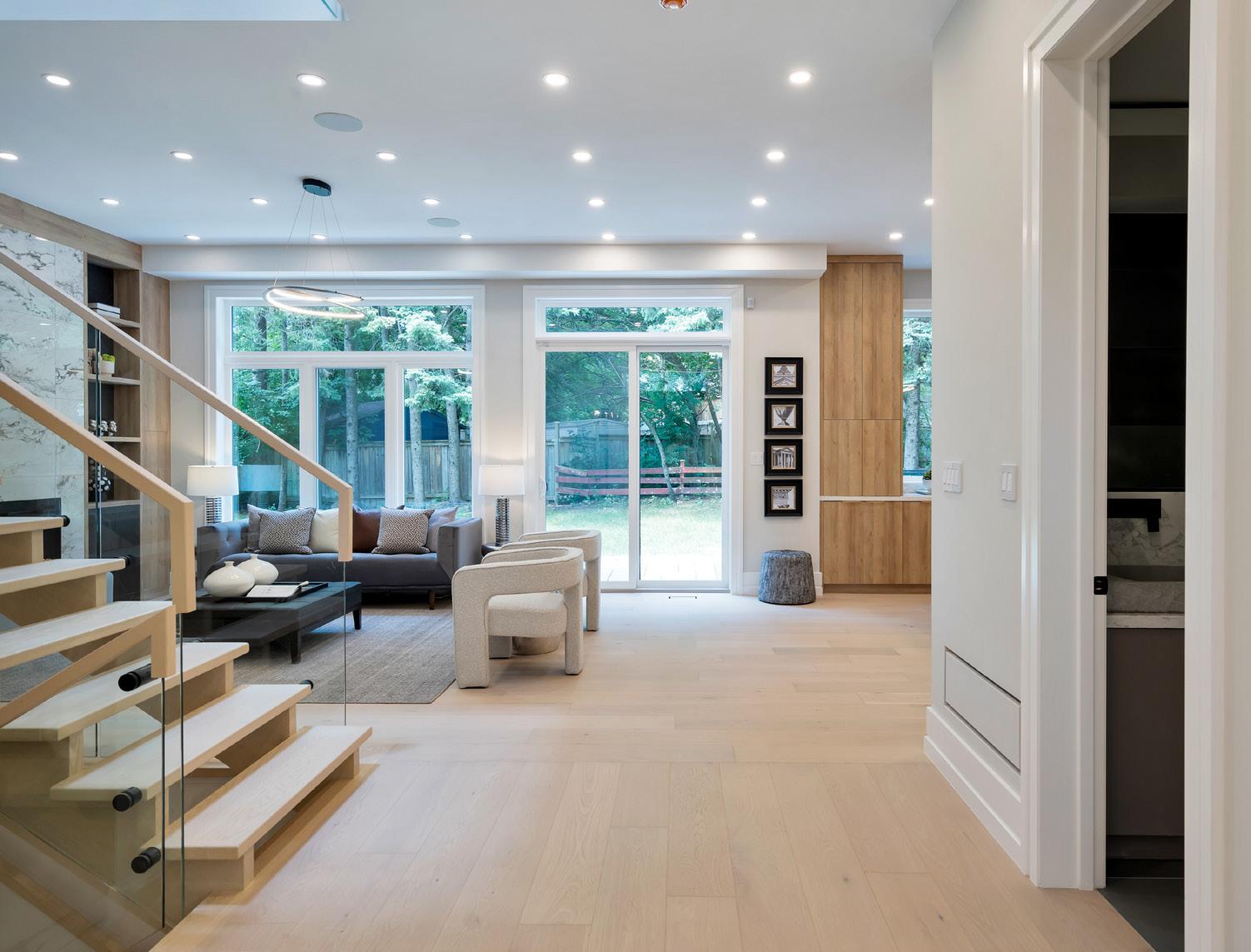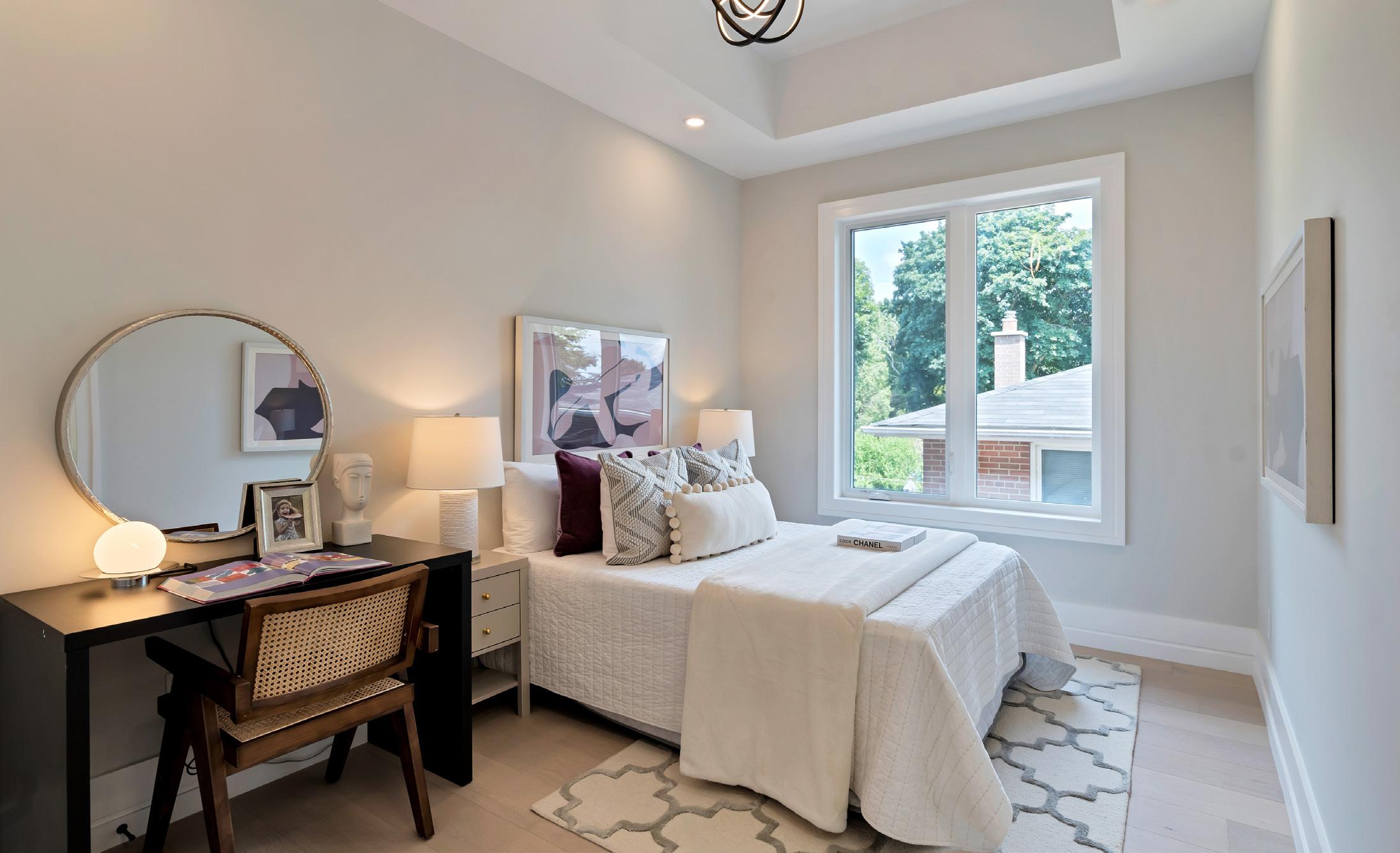 Ascending to the second floor, you’ll discover four generously sized bedrooms, each boasting its own en-suite bathroom and ample closet space with organizers. The principal retreat is a sanctuary unto itself, featuring a boutique-inspired walk-in dressing room illuminated by a skylight and a lavish six-piece luxury ensuite.