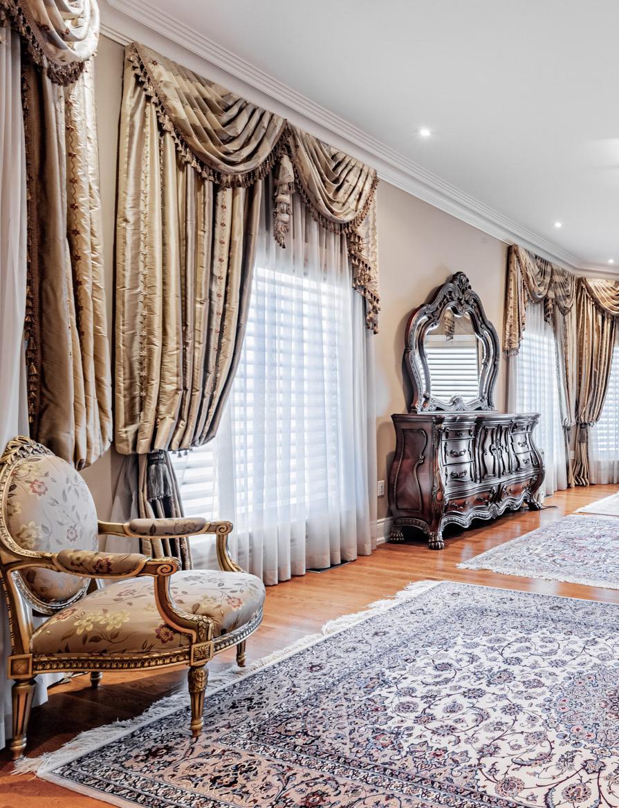 Oversized primary retreat complete with expansive sitting area with fireplace, his and her dressing room, and spa-style six-pieces ensuite. The second bedroom features four-pieces ensuite, and large walk-in closet and overlooks the front garden. The third bedroom also features four-pieces ensuite, walk-in closet, and a large window overlooks the private backyard oasis.