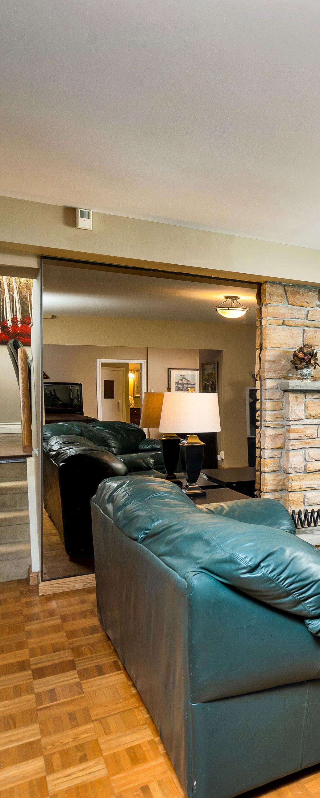 The impressive family room is the perfect space to relax with family, offering a wet bar, a stunning fireplace that anchors the room, and a walk-out with ravine views. The spa with sauna serves as the perfect backdrop for exceptional living.