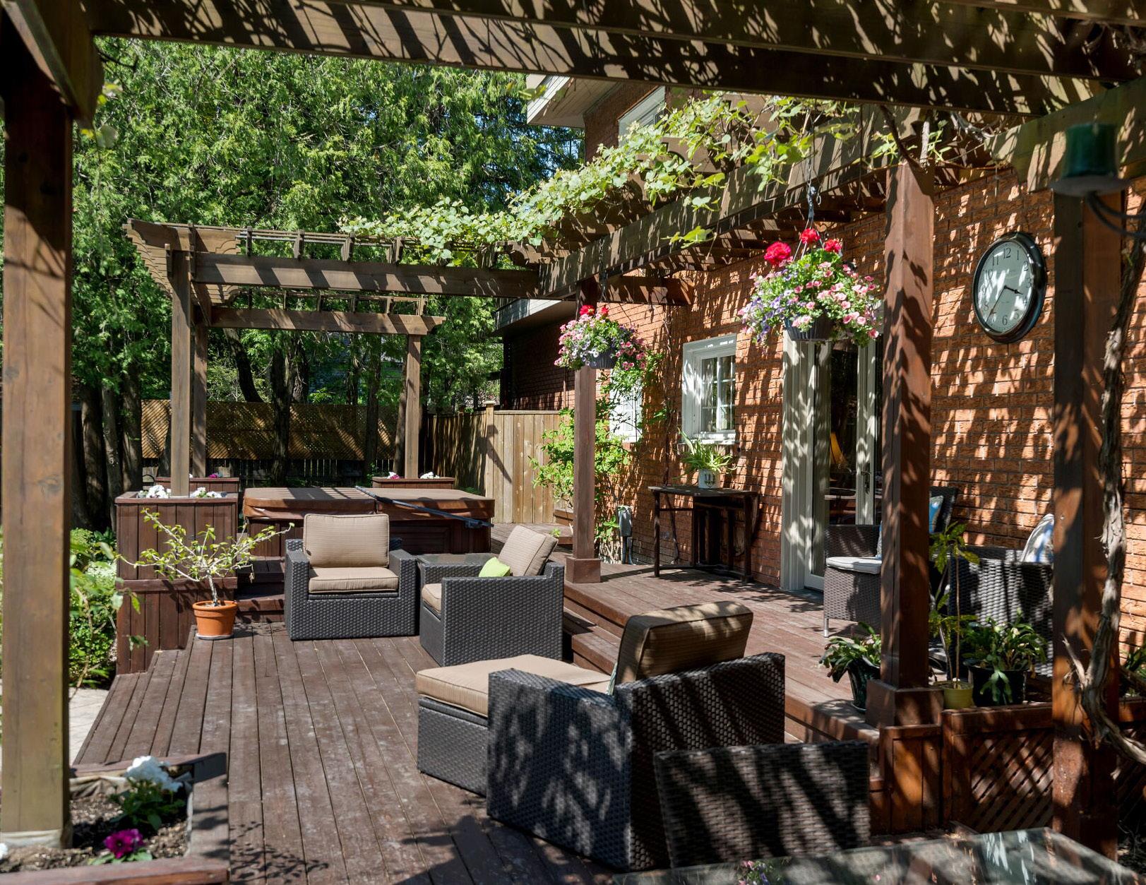 This expansive, light-filled home masterfully showcases a free-flowing layout and warm tones. The bright and sophisticated living room boasts elegant crown moulding and a fireplace. The formal dining room is ideal for entertainment. The familysized kitchen features high-end appliances, custom cabinetry, and a backsplash. The breakfast area has direct access to the rear wrap-around terrace.
