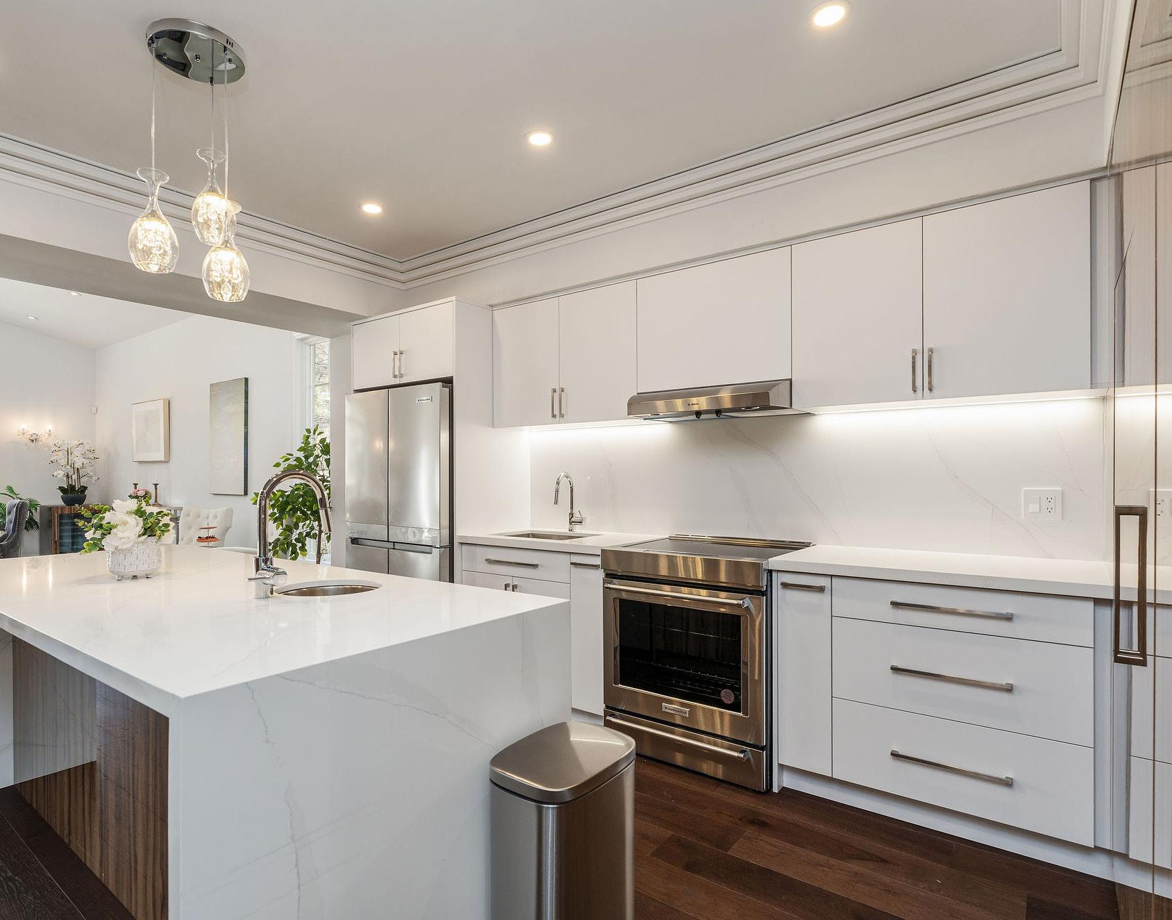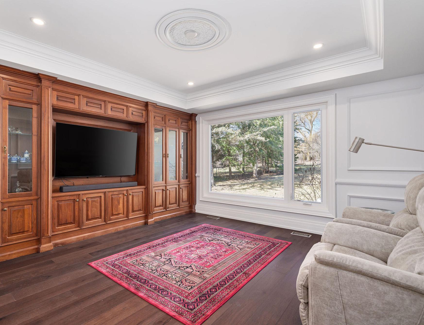 The fully redesigned kitchen elevates the entire space with its clean modern lines, oversized island, and seamless flow that brings together beauty, function, and luxury. A bright living room with a charming bay window, a welcoming family room with views of the backyard, and a beautifully finished wood-paneled office with a fireplace complete this elegant main floor.