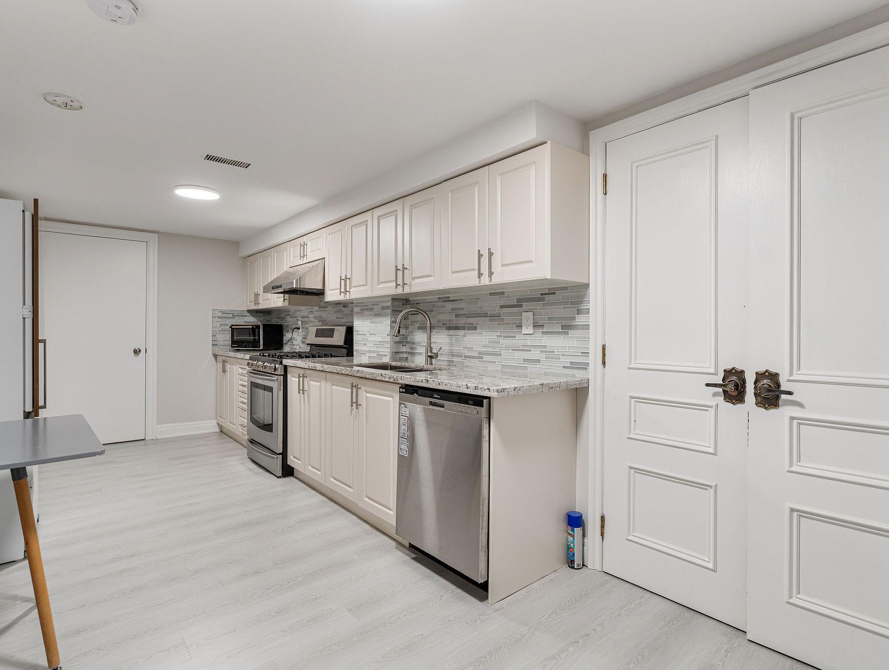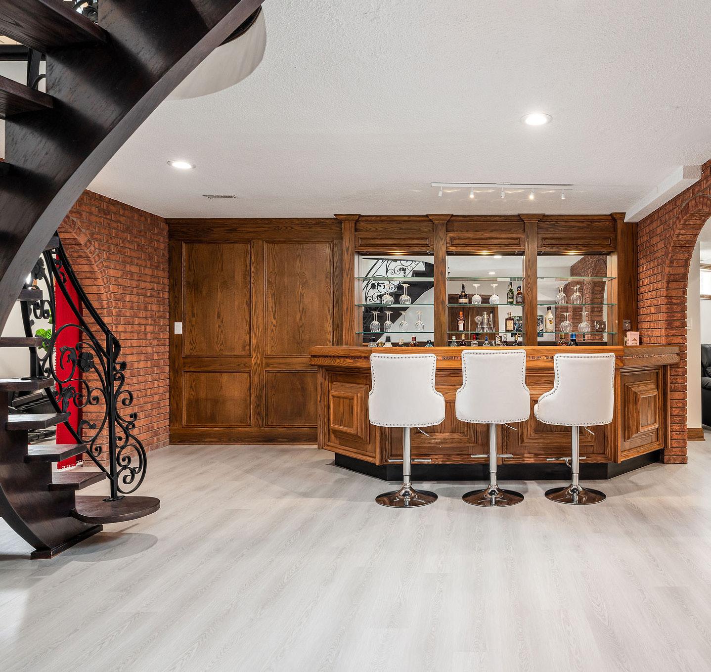 A secondary staircase provides direct access to the finished lower level and connects seamlessly to a private side entrance. This open-concept space is thoughtfully designed for both entertaining and extended living. Featuring a luxurious wet bar, cozy fireplace, and spacious recreation area, the layout offers both flexibility and comfort. The lower level also includes a second kitchen, an additional bedroom, and a three-piece bathroom complete with a sauna, providing privacy and convenience for guests or multi-generational families. Every detail has been thoughtfully curated to offer a lifestyle that is both elevated and enduring.