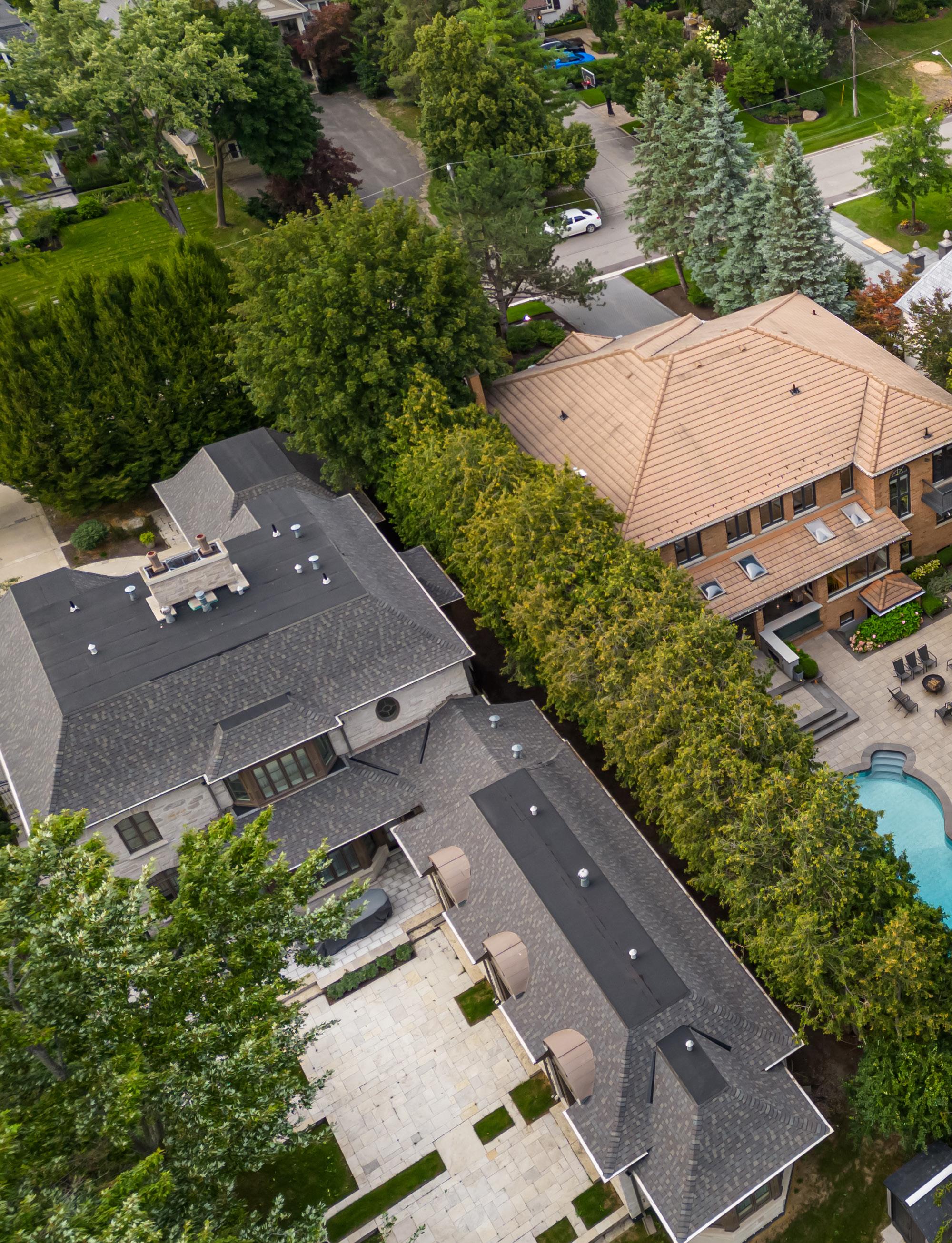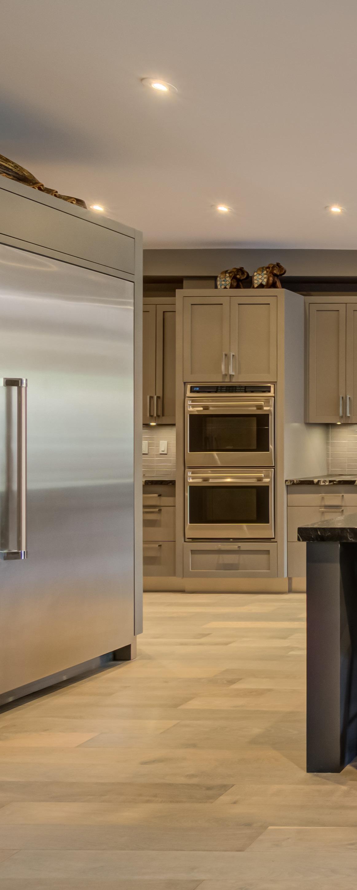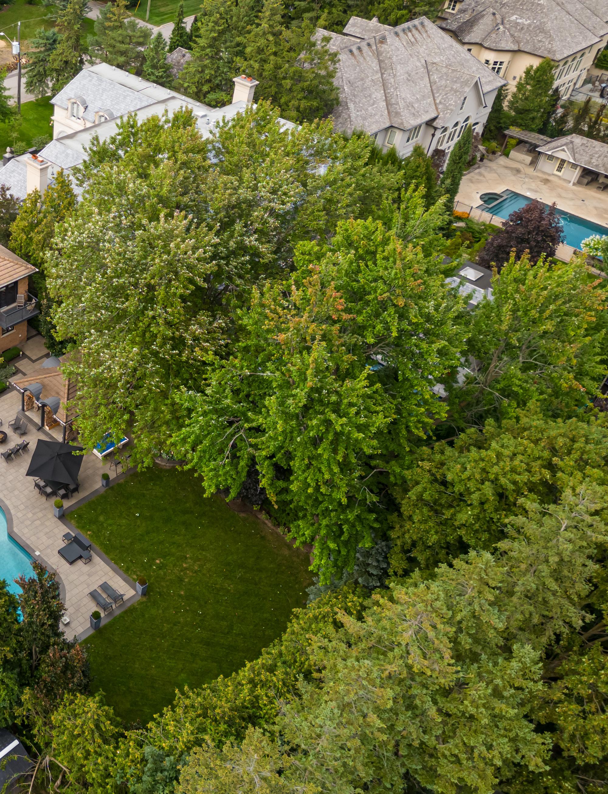 From the moment you step through the double-height welcoming entryway, this home’s allure extends all the way to its spectacular resort-like backyard oasis with an oversized swimming pool, exquisite garden, and a Zen-like feel of a waterfall. The living room features a fireplace and large windows overlooking the front garden. The family-sized formal dining room seamlessly connects to the kitchen, offering ample storage. The chef’s kitchen, adorned with top-of-theline finishes, appliances, an eat-in central island, and natural stone countertops, pairs perfectly with the breakfast area featuring a skylight. The family room, overlooking the rear gardens, boasts a contemporary fireplace and leads out to a private patio with a jacuzzi and fire pit – perfect for outdoor entertaining or simply enjoying the tranquility of nature.