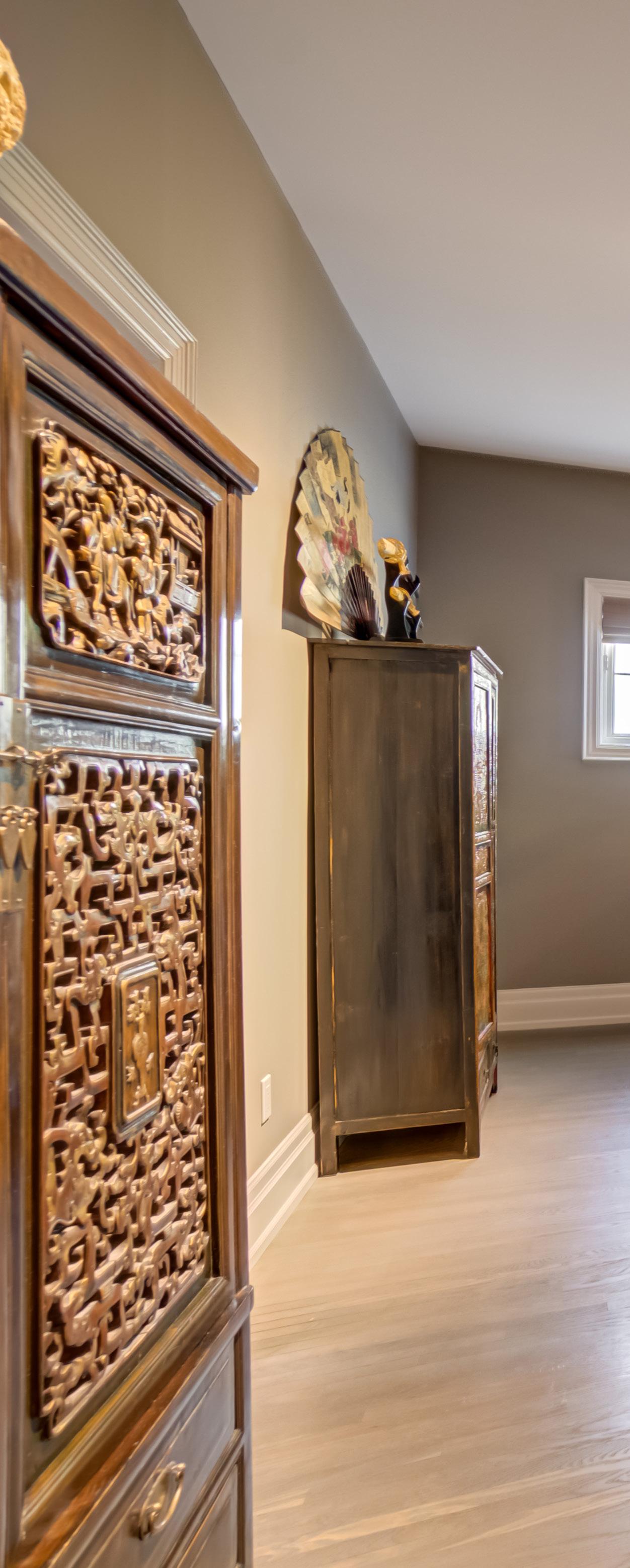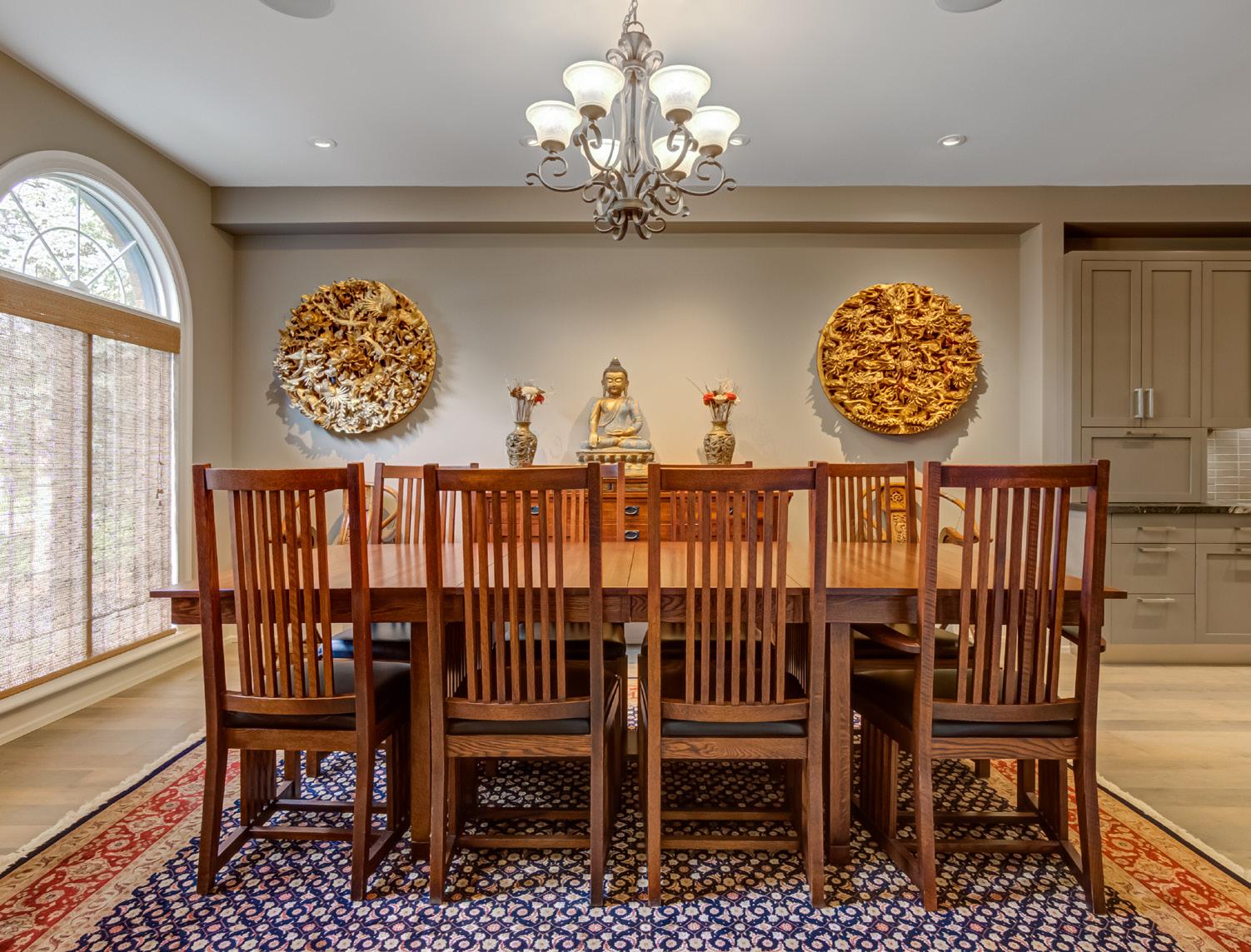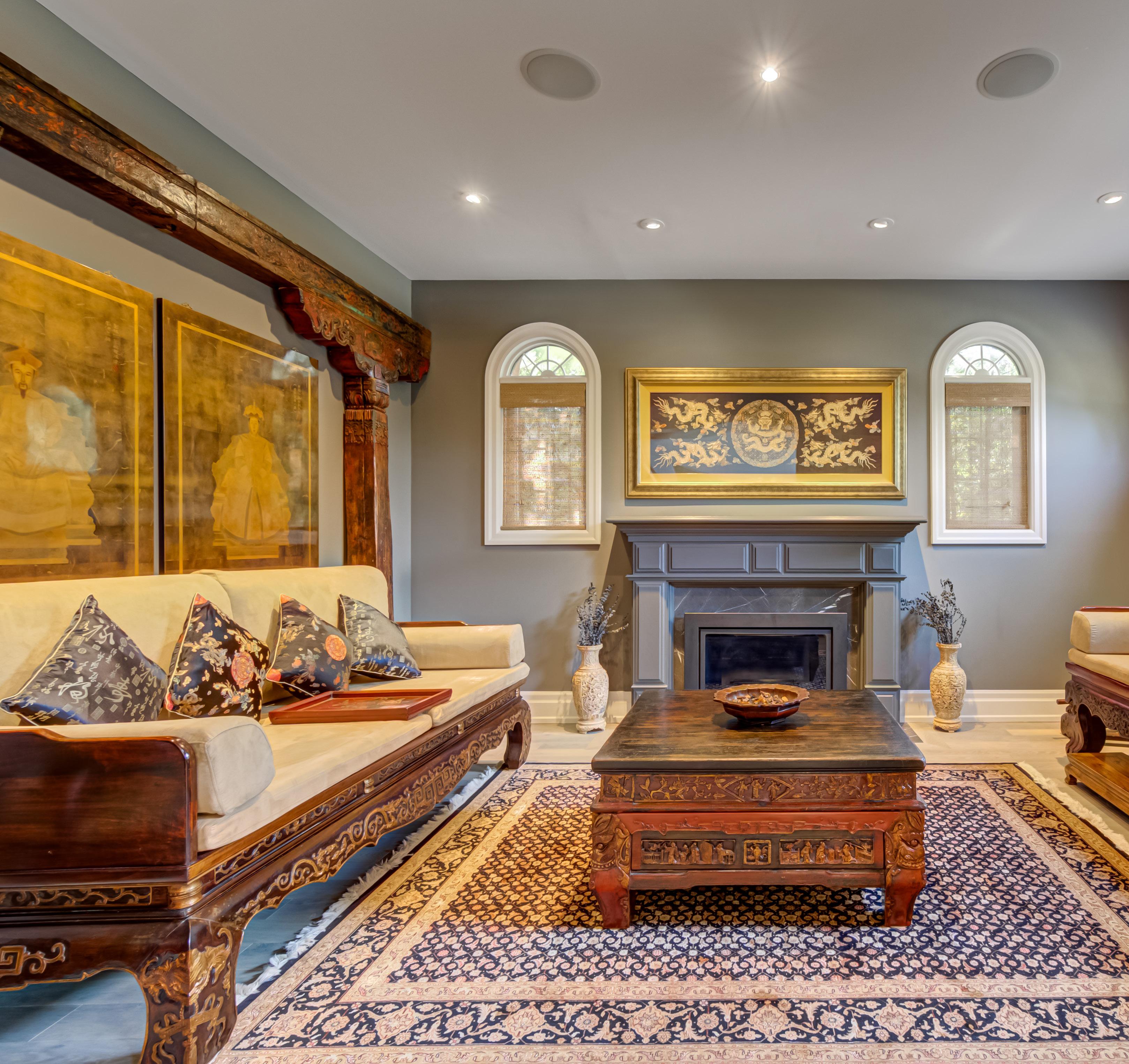 From the moment you step through the double-height welcoming entryway, this home’s allure extends all the way to its spectacular resort-like backyard oasis with an oversized swimming pool, exquisite garden, and a Zen-like feel of a waterfall. The living room features a fireplace and large windows overlooking the front garden. The family-sized formal dining room seamlessly connects to the kitchen, offering ample storage. The chef’s kitchen, adorned with top-of-theline finishes, appliances, an eat-in central island, and natural stone countertops, pairs perfectly with the breakfast area featuring a skylight. The family room, overlooking the rear gardens, boasts a contemporary fireplace and leads out to a private patio with a jacuzzi and fire pit – perfect for outdoor entertaining or simply enjoying the tranquility of nature.