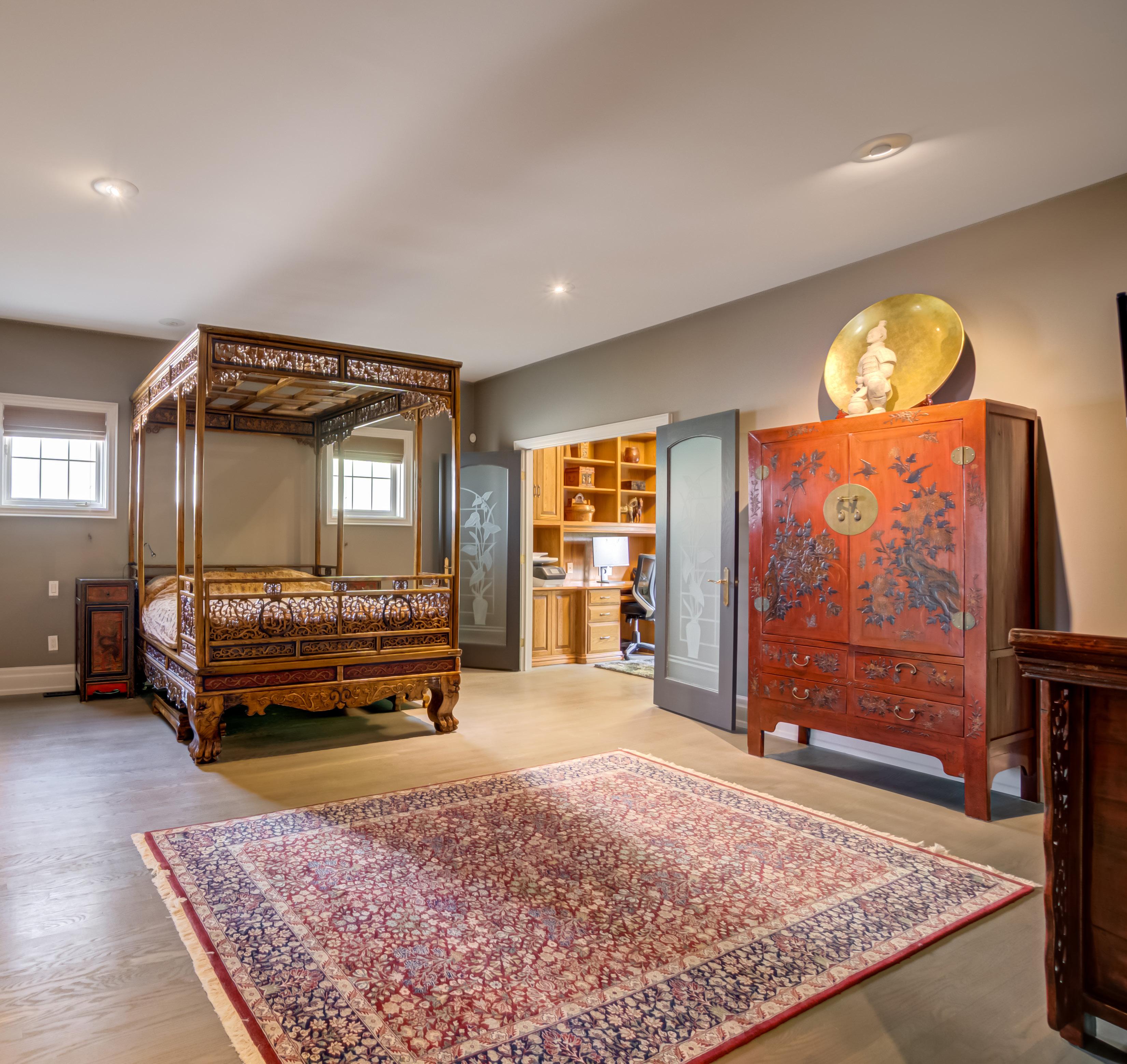 This home also boasts a unique main-floor office, two staircases going up and down, a conveniently spacious mudroom, and a generously sized laundry room. Upstairs, there are 5 bedroom ensuites, including the oversized principal retreat complete with his & her walk-in dressing rooms, a spa-style 6-piece ensuite, and a private office that walks out to a sprawling sun deck overlooking the rear garden.