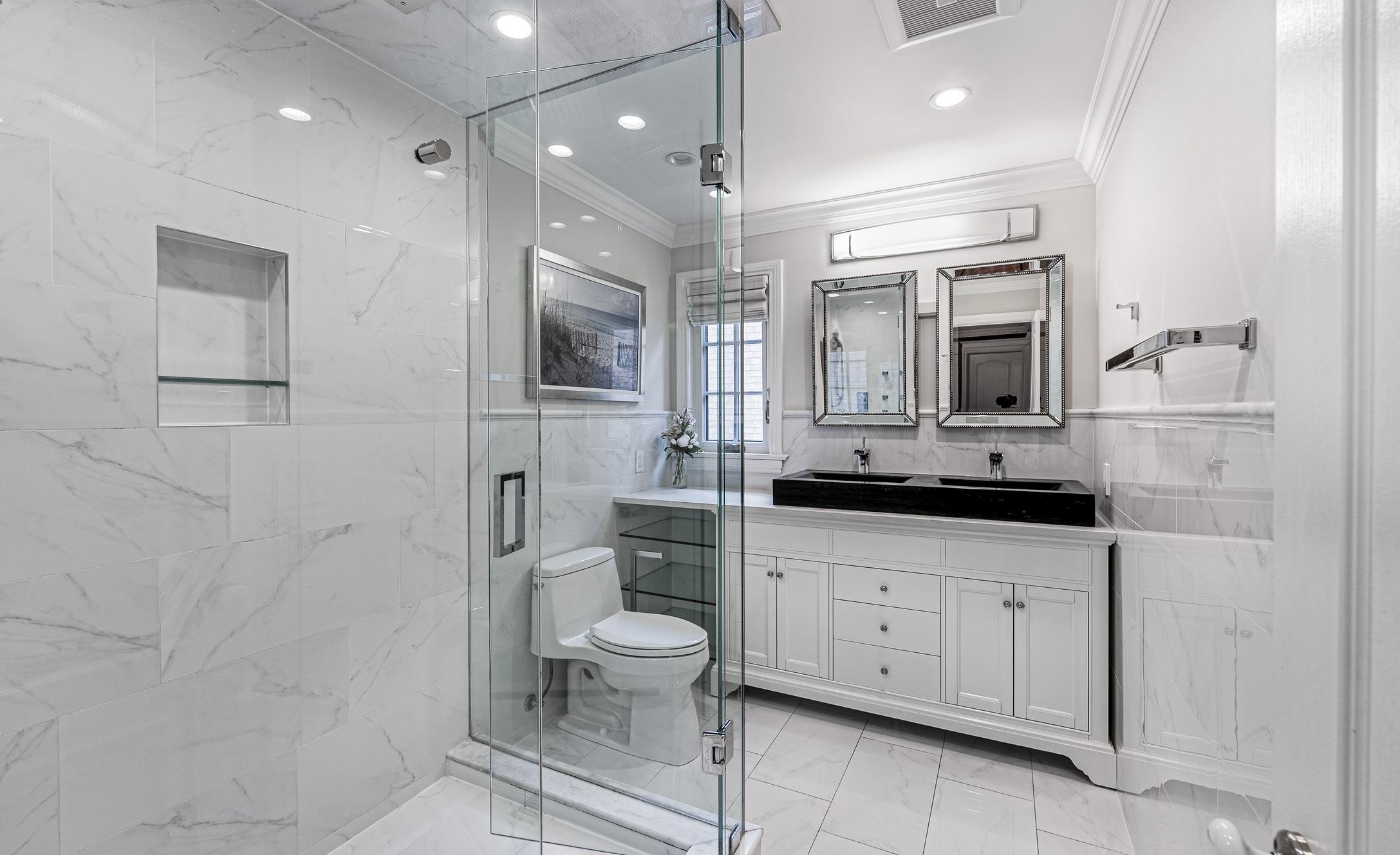The 4 bedrooms upstairs include an opulent primary bedroom with a lavish 5-Piece ensuite and a walk-in dressing room. The basement level includes a finished study area and a secure wine cellar/cold room, accessible off of a formal open staircase. The rest of the basement level is open and ready for renovation, with roughed-in plumbing for a fourth bathroom and a second fireplace.