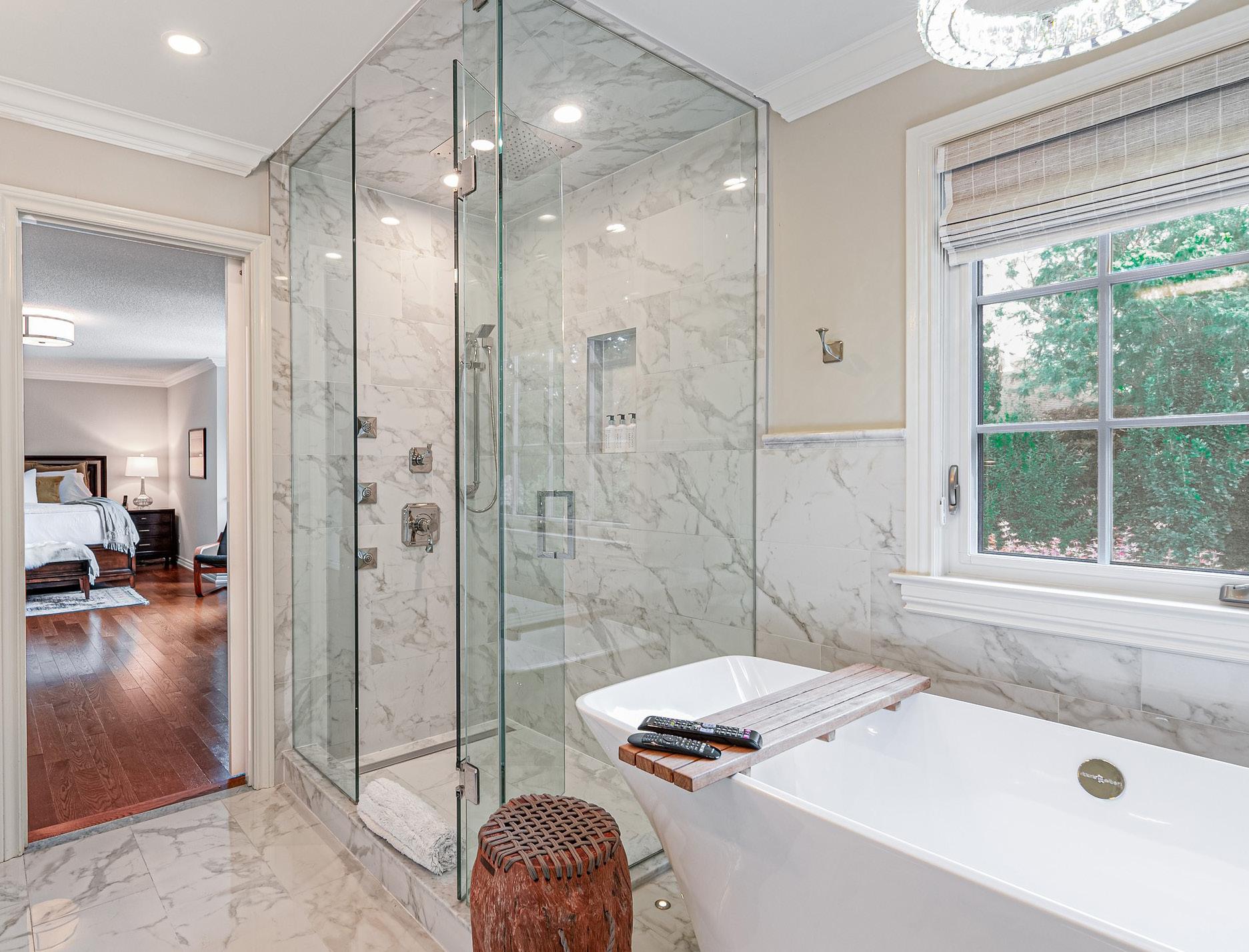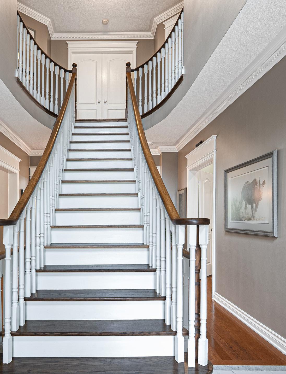 The entryway makes a dramatic impression with its large foyer and vestibule, featuring a magnificent double-height space followed by the grandeur of a dramatic Scarlet O’Hara staircase. This allows for unmatched natural light that pours through the new ‘grilled’ windows and entry systems throughout. An open floor plan promotes a relaxed elegance for daily family living, while also exuding a sense of pride of ownership when entertaining friends.