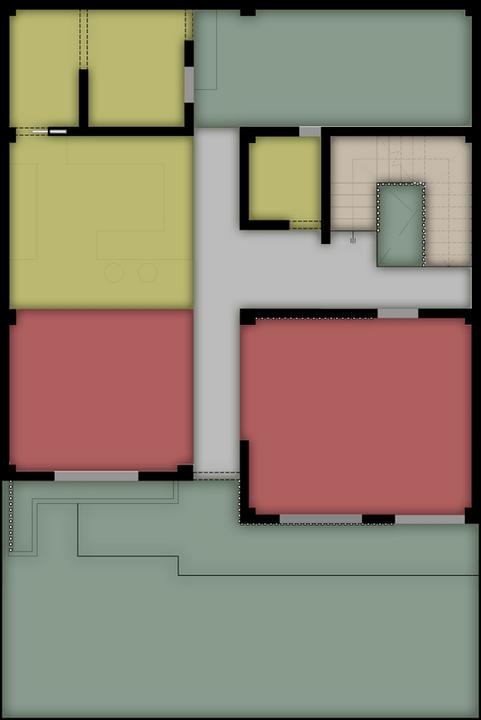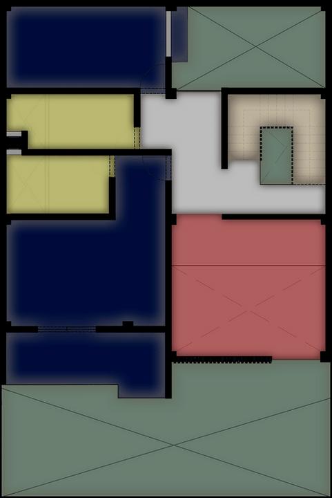 La zonificación del tercer nivel se basa en 3 zonas, en él se accede por una circulación vertical, en donde encontramos la zona intima que está conformado por un área de estudio pensada y proyectada para el usuario que es el joven Universitario de Arquitectura, este será un ambiente específico para que pueda realizar sus trabajos en un lugar más amplio, cómodo, además cuenta con un balcón que presenta visuales, también es un medio de ventilación e iluminación mediante el jardín interior.